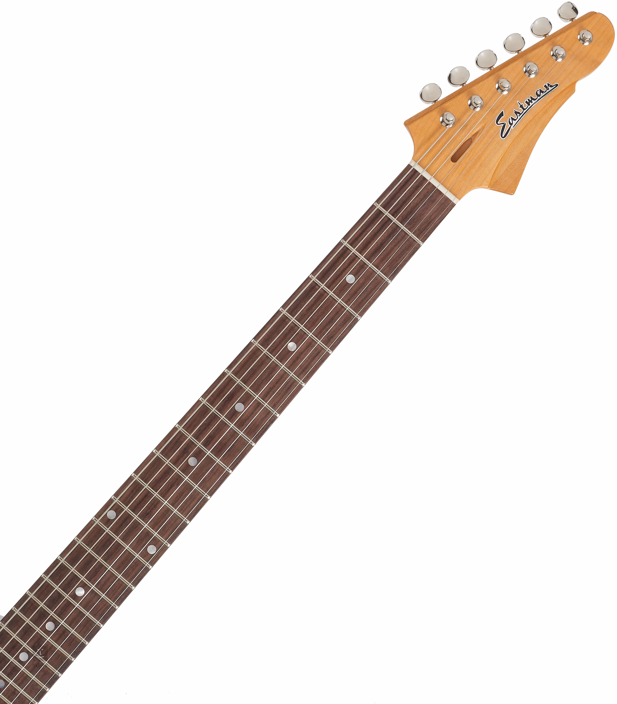 Die Eastman FullerTone E-Gitarren sind eine Neuinterpretation der klassischen Doppel- und Single-Cut-Designs von Otto D'Ambrosio, dem Chefdesigner der Marke. Sie zeichnen sich durch ein originelles Konzept aus, bei dem Hals und Korpus mit zwei Schrauben verbunden werden, die die dreifache Fläche zwischen Hals und Korpus haben, durch "gebackene" Hölzer mit den Eigenschaften bereits gealterter Materialien sowie durch erstklassige Tonabnehmer und Hardware.