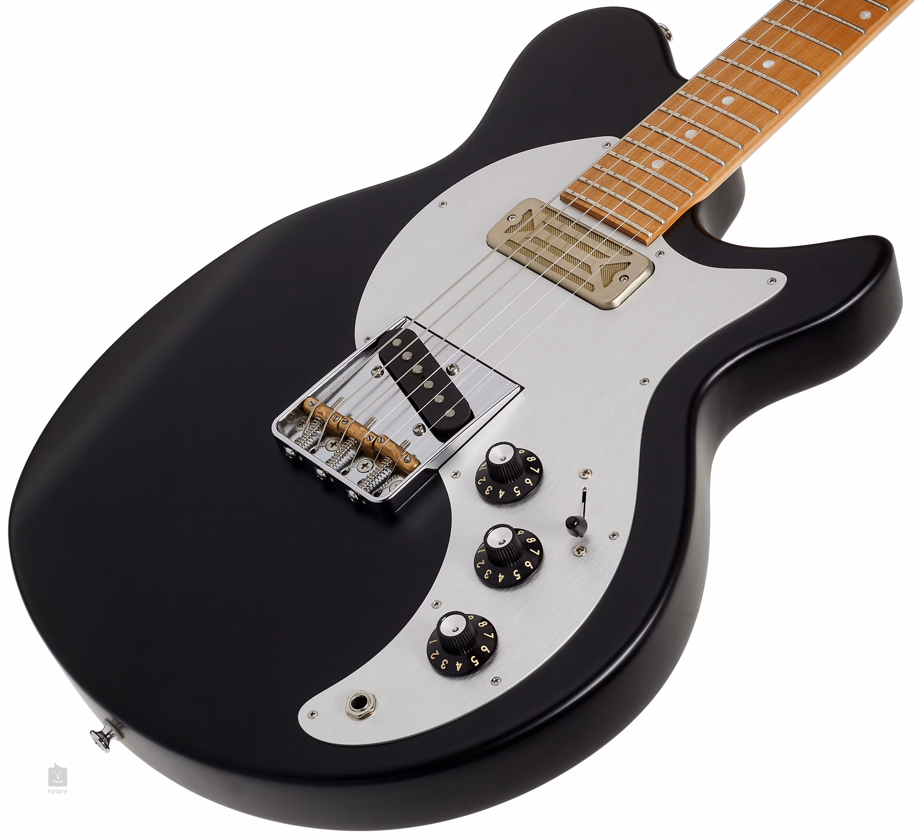Der Sound des Tonerider geräuschlos gestapelten Single-Coil-Tonabnehmers und des Custom-Goldfoil-Soapbar-Humbuckers am Hals kombiniert die Wärme des Vintage-Sounds mit der sauberen Ansprache moderner Tonabnehmer. Mit den Standard-Potentiometern lässt sich der Klangcharakter einstellen. Stabile Stimmung und gutes Sustain werden durch die Saitenbefestigung im Six-In-Line-Drive und durch die T-Style-Brücke mit kompensierten Messing-Sätteln durch den Korpus garantiert. Die schöne Verarbeitung wird durch das Schlagbrett aus silber eloxiertem Aluminium und die Nickel-Hardware akzentuiert.