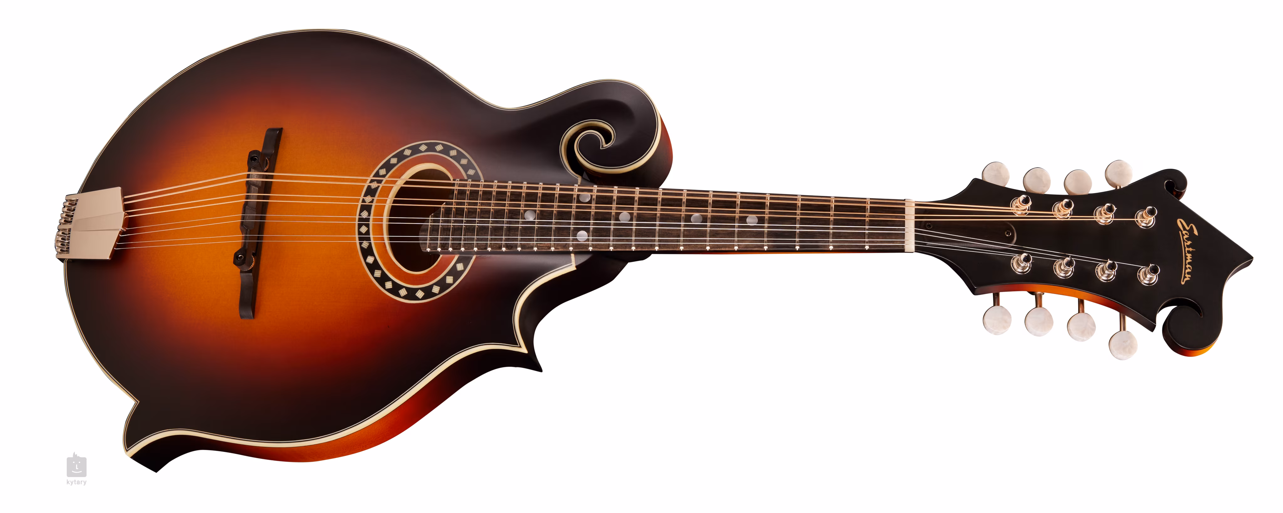 Die Eastman MD314E-SB ist eine vollmassive elektroakustische F-Mandoline, die auch den erfahrensten Mandolinenspieler begeistern wird. Die Decke der Mandoline ist aus Fichtenholz, Boden und Zargen sind aus Ahorn gefertigt. Der Korpus ist mit satiniertem Lack überzogen. Auf den Ahornhals ist ein Ebenholzgriffbrett mit zweiundzwanzig Bünden geklebt.