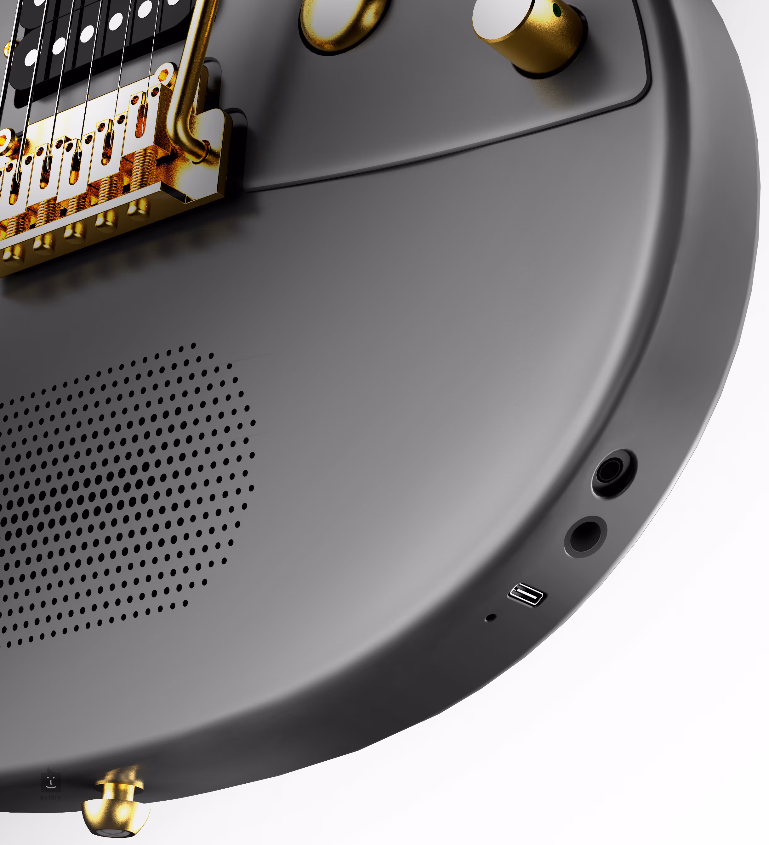 Die Kombination aus einem Grashüpfer-Humbucker, zwei Single-Coil-Tonabnehmern mit Keramikmagneten und einem 6,3-mm-Klinkenausgang sorgt in Verbindung mit einer Gitarre oder einem Sound-Interface für ein normales E-Gitarren-Spielerlebnis, aber die Enya Inspire kann noch mehr.