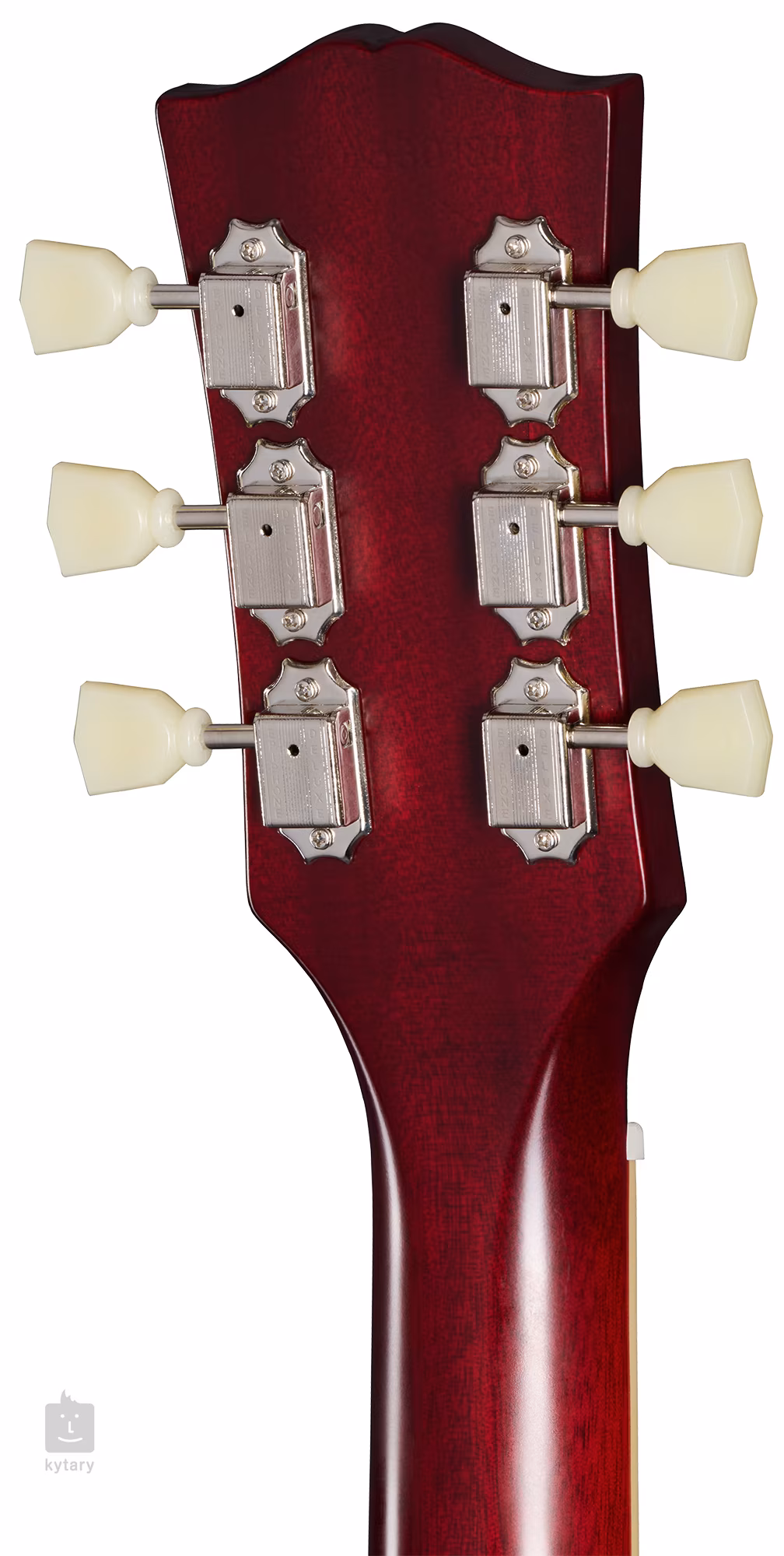 Der Mahagonikorpus der Gitarre ist mit einer Ahorndecke und einer spektakulären AAA-Qualität Ahornfurnierdecke verziert. Der gemaserte Ahorn wird durch eine glänzende Vintage-Glanzlackierung und die Farbgebung Washed Cherry Sunburst akzentuiert. Auf den einteiligen Mahagoni-Hals ist ein Palisander-Griffbrett geklebt, das mit zweiundzwanzig Medium-Jumbo-Bünden bestückt ist. Die längere Halsverbindung (Long Tenon) trägt zu größerer Stabilität und besserem Sustain bei, und das schmalere, schnelle SlimTaper-Profil ist eine Abkehr von älteren Modellen mit volleren Hälsen. Die Orientierung auf dem Griffbrett wird durch Positionsblöcke aus Perlmutt erleichtert.