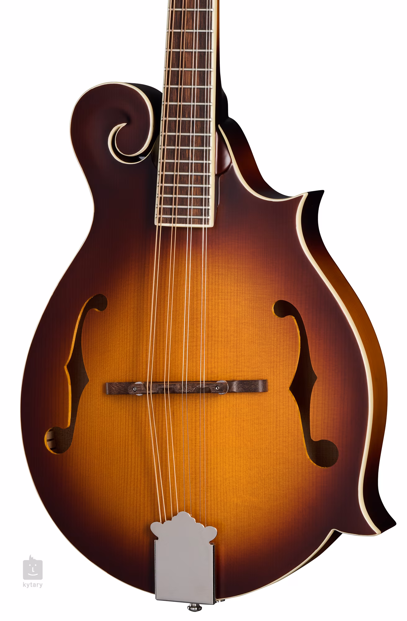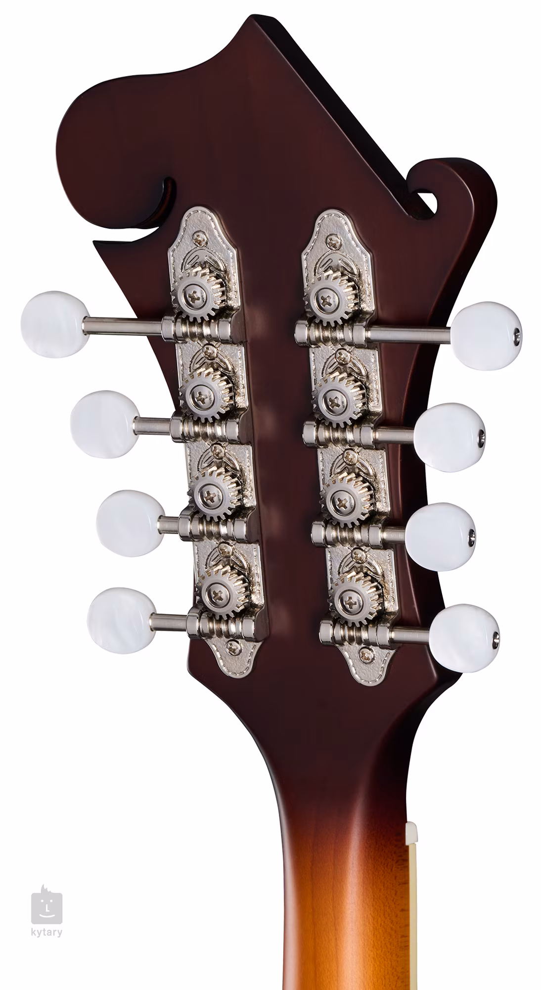Der Korpus dieser F-Mandoline besteht aus einer massiven Sitka-Fichtendecke sowie Boden und Zargen aus massivem Ahorn. Auf den Ahornhals mit gefälligem C-Profil ist ein Feigengriffbrett geleimt, das mit zwanzig Narrow Medium-Bünden ausgestattet ist. Die Saiten sind über einen Knochen-Nullbund in Vintage-Stimmmechaniken mit Perlmuttimitat-Wirbeln und einem Feigenholz-Griffbrett in den Saitenreitern befestigt. Das stilvolle Finish wird durch das Decken- und Griffbrettbinding und die Nickel-Hardware akzentuiert.