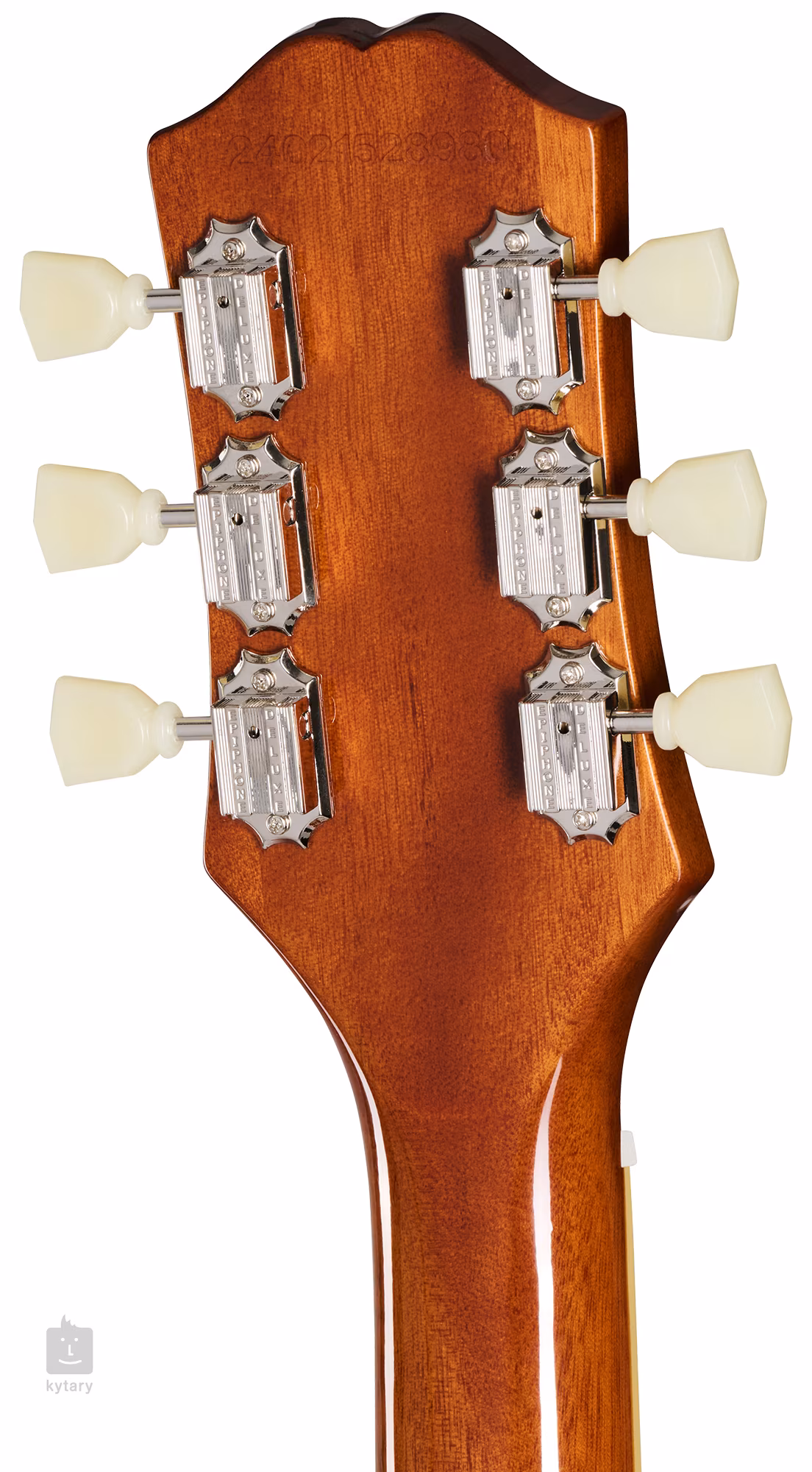 Die Saiten sind in die Vintage Deluxe-Stimmmechaniken des Unternehmens eingespannt und durch ein einstellbares LockTone TOM-Saitenhalter in der Saite. Das stilvolle Design wird durch das helle Korpus- und Griffbrettbinding und das cremefarbene Schlagbrett akzentuiert.