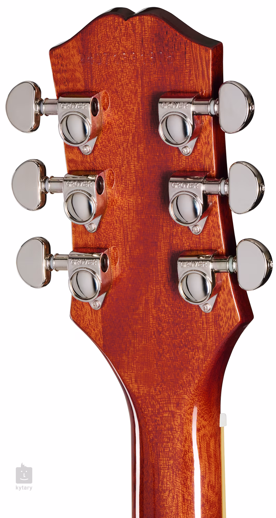 Die Saiten sind in hochwertige Grover Rotomatic-Mechaniken mit Nierenwirbeln eingespannt und durch einen verstellbaren LockTone TOM-Saitenhalter in der Saite. Das stilvolle Design wird durch das helle Korpus- und Griffbrettbinding und das cremefarbene Schlagbrett akzentuiert.