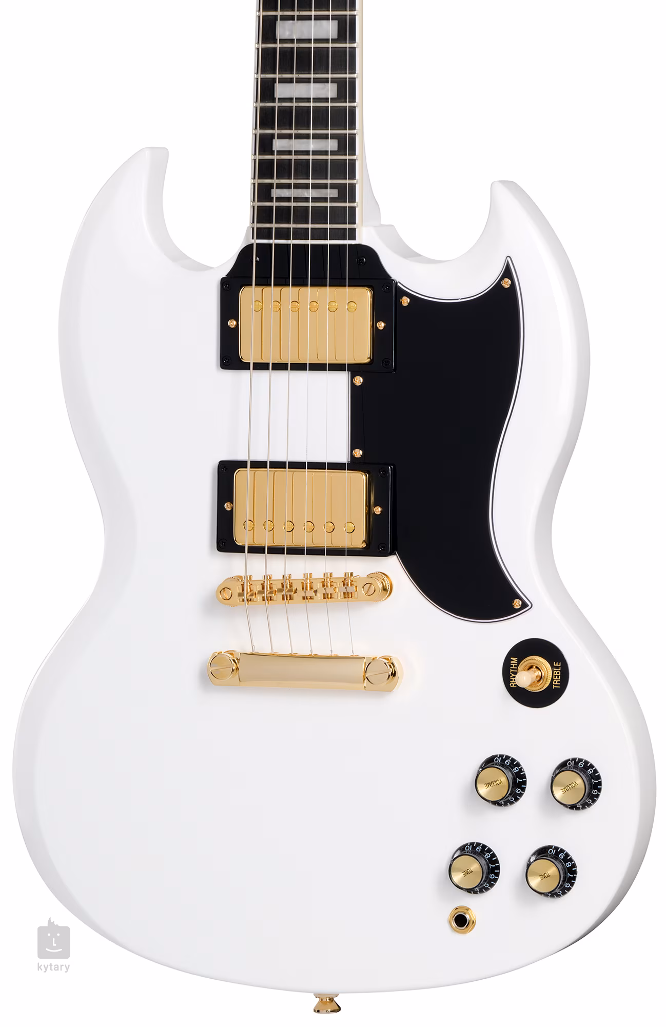 Der Korpus der SG Custom Alpine White E-Gitarre ist aus Mahagoni gefertigt. Der Mahagoni-Hals ist auf ein Ebenholz-Griffbrett geklebt, das mit zweiundzwanzig Medium-Jumbo-Bünden bestückt ist. 1960 ist das SlimTaper "C"-Halsprofil nicht so schmal wie andere SlimTaper-Profile, aber immer noch schnell und komfortabel genug. Die Orientierung auf dem Griffbrett wird durch positionierbare Perlmuttimitationsblöcke erleichtert.