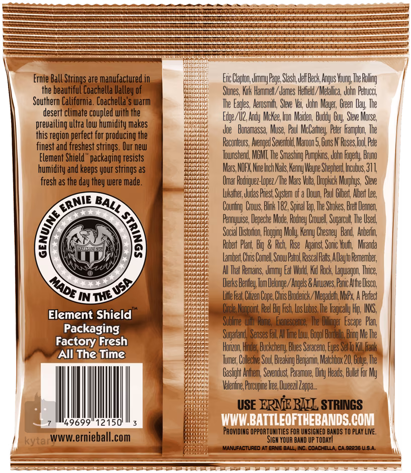 Die amerikanische Firma Ernie Ball ist seit vielen Jahrzehnten einer der führenden Hersteller von Gitarrensaiten. Sie verwendet für ihre Produktion die fortschrittlichsten Technologien und Qualitätsmaterialien. Sie entspricht den aktuellen Anforderungen und Bedürfnissen selbst der anspruchsvollsten Gitarristen. Ihr einzigartiger Sound wurde auf Aufnahmen von Musikern wie Paul McCartney, Keith Richards, Eric Clapton, Slash und Jimmy Page festgehalten.