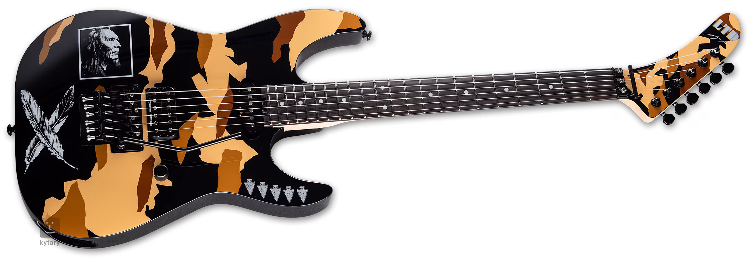GL DESERT EAGLE ist das ESP LTD Signature Modell des amerikanischen Gitarristen George Lynch (Lynch Mob, ex-Dokken). Es ist eine Neuinterpretation des allerersten ESP-Signaturmodells - des Super ST-Modells "Kamikaze", bei dem die Grafiken mit Kriegsthematik durch Motive ersetzt wurden, die mit den Ureinwohnern der USA verbunden sind.