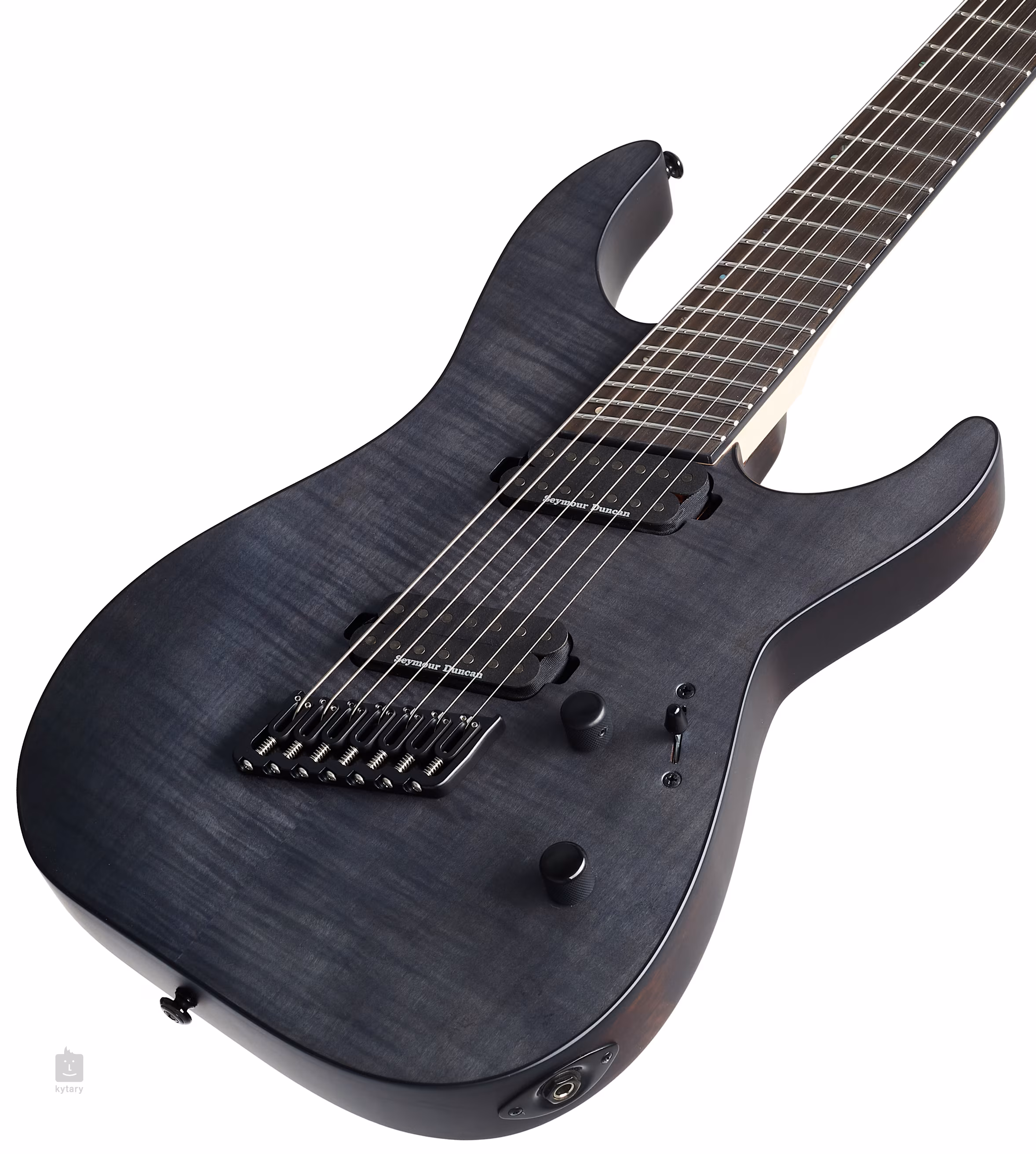 Das siebensaitige Modell M-1007 MS FM STBLKS verwendet ein unorthodoxes Konzept mit schrägen Bünden (variable Spurweite 648-686 mm), das den Saiten eine optimale Spannung verleiht und nach Meinung einiger Musiker eine natürlichere Bewegung der Hand auf dem Griffbrett ermöglicht.