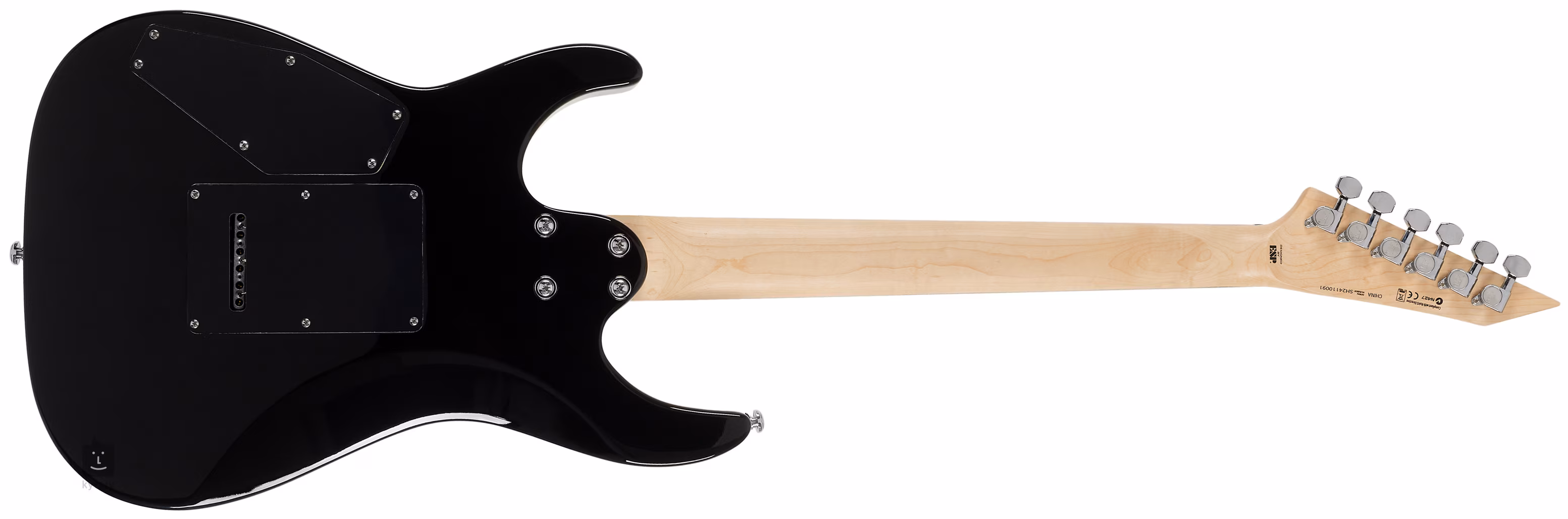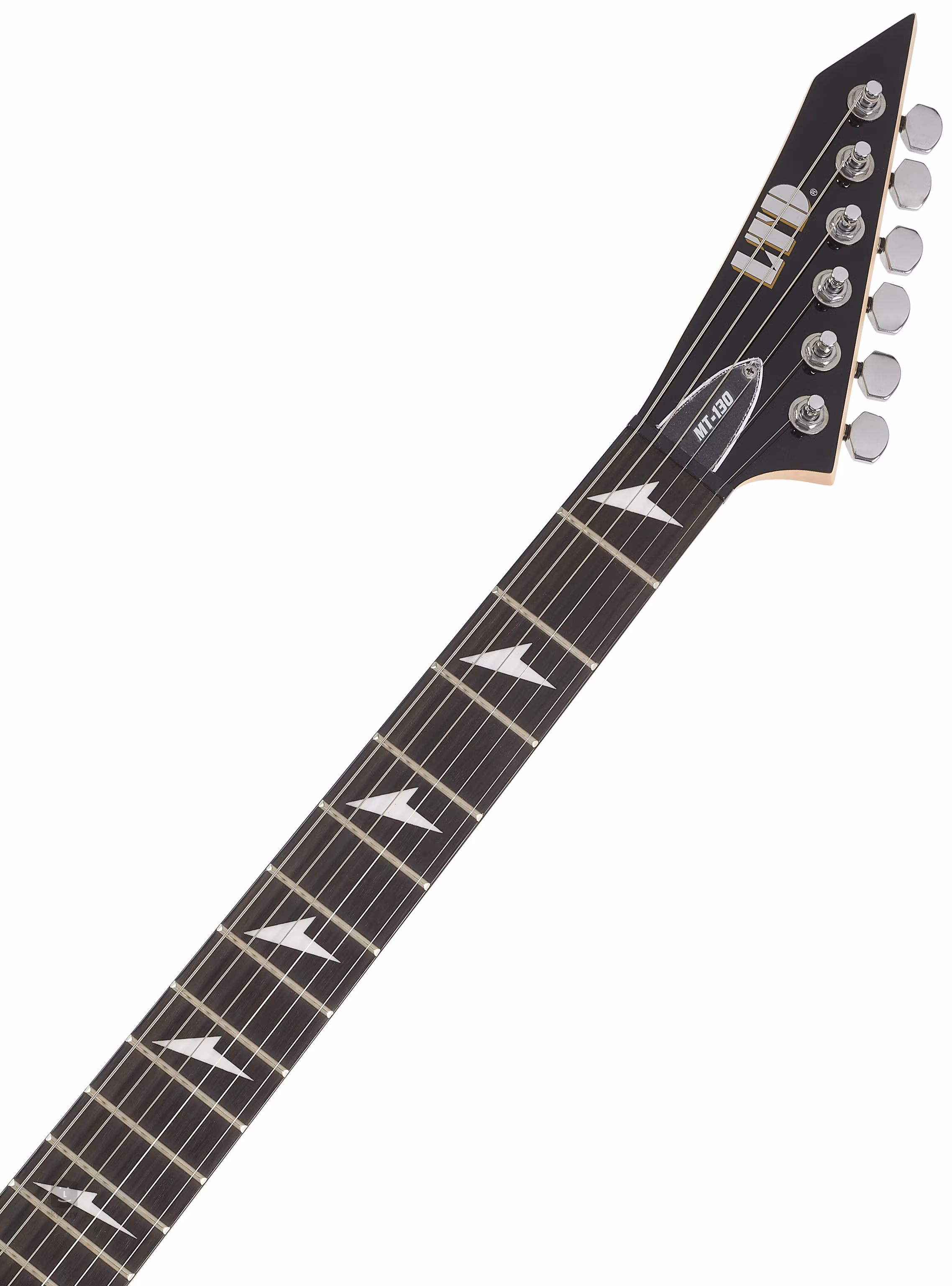 Der Korpus der MT-130 Black Gitarre ist aus Linde gefertigt. Der verschraubte Ahornhals ist auf ein modernes Composite-Griffbrett mit vierundzwanzig Extra-Jumbo-Bünden geleimt. Die Kombination der firmeneigenen Pickups, dem ESP LH-100 Steg- und Hals-Humbucker und dem ESP LS-100 Single-Coil-Mittel-Pickup, verleiht der Gitarre eine große Klangvielfalt, die Sie in Rock, Metal, Punk und anderen Musikrichtungen schätzen werden. Mit den Standardreglern lässt sich der Klangcharakter einstellen. Die Saiten sind in den verchromten Mechaniken und dem Tremolo des Unternehmens montiert.