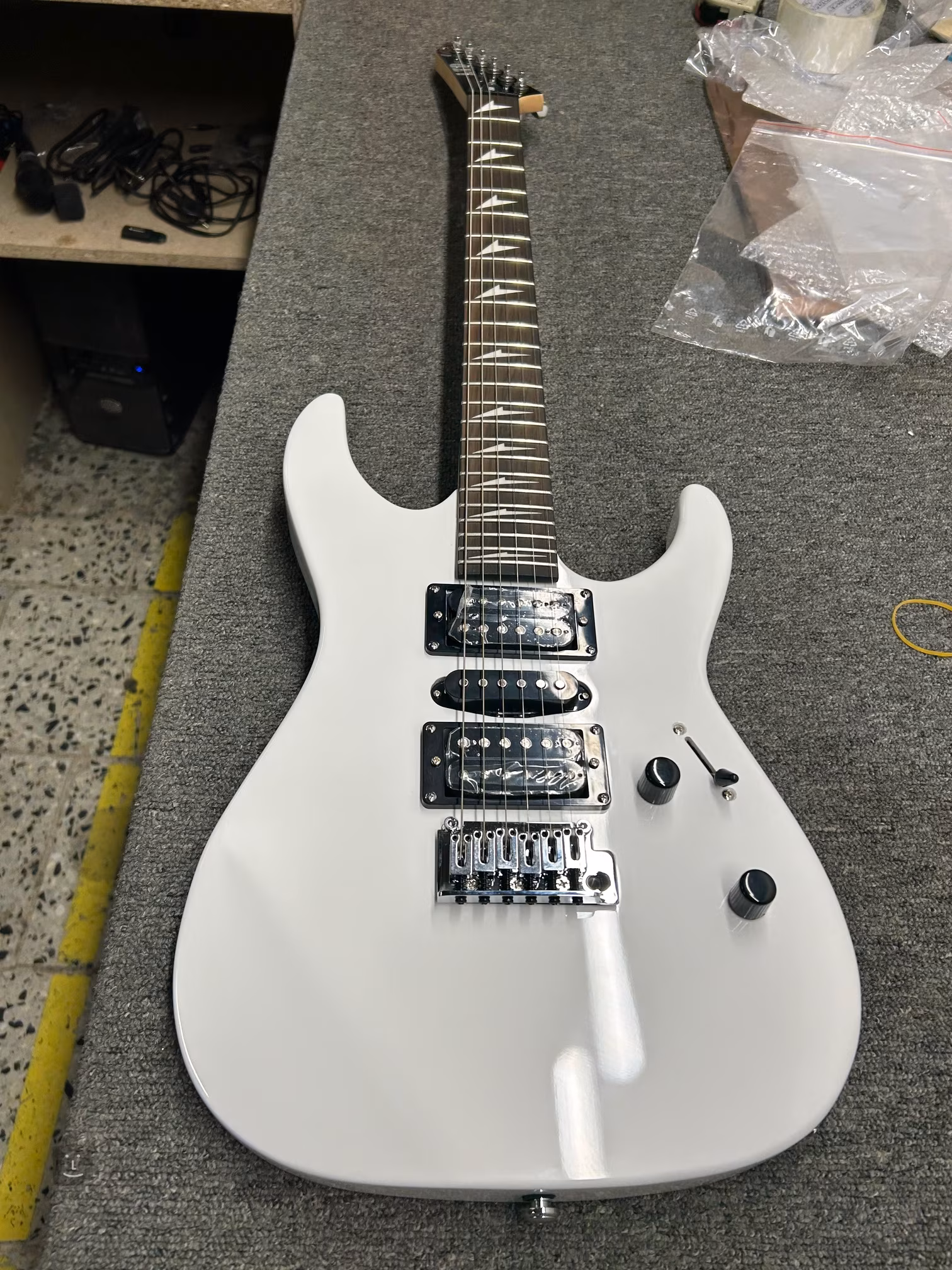 Der Korpus der MT-130 Snow White Gitarre ist aus Linde gefertigt. Der verschraubte Ahornhals ist auf ein modernes Composite-Griffbrett mit vierundzwanzig Extra-Jumbo-Bünden geleimt. Die Kombination der firmeneigenen Tonabnehmer, dem ESP LH-100 Steg- und Hals-Humbucker und dem ESP LS-100 Single-Coil-Mittel-Pickup, verleiht der Gitarre eine große Klangvielfalt, die Sie in Rock, Metal, Punk und anderen Musikrichtungen schätzen werden. Mit den Standardreglern lässt sich der Klangcharakter einstellen. Die Saiten sind in den verchromten Mechaniken und dem Tremolo des Unternehmens montiert.