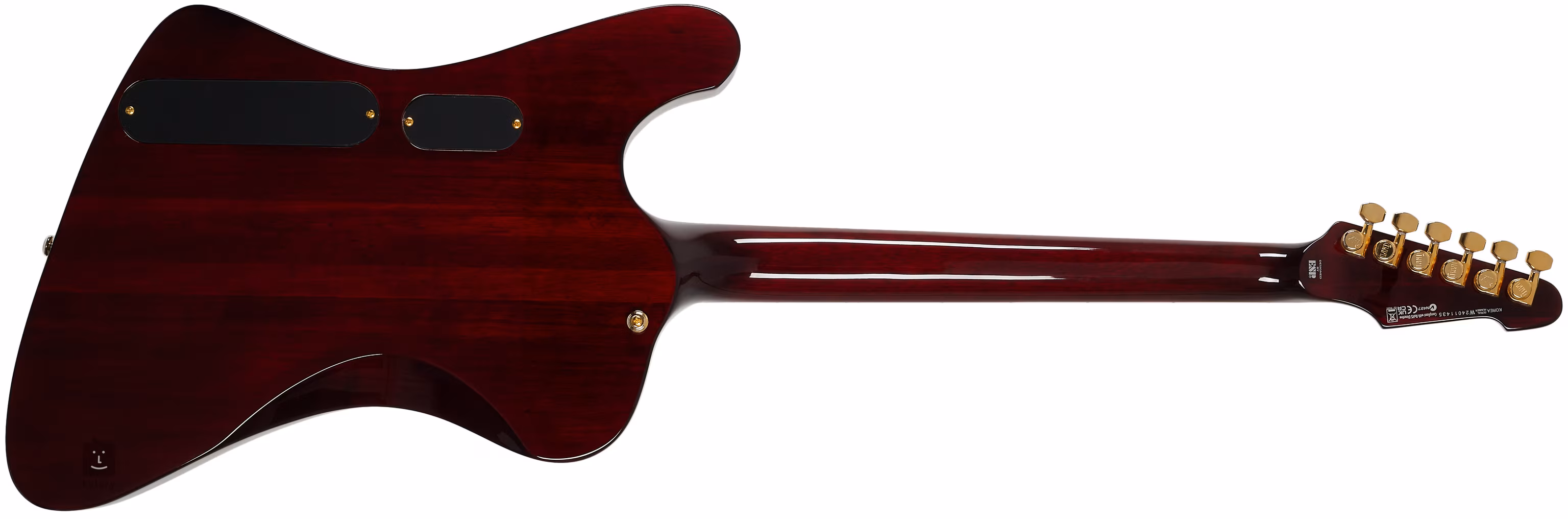 Die Saiten werden in den hochwertigen Locking-Mechanismen des Unternehmens und einer soliden Tonepros Locking TOM und Saitenbrücke gehalten. Das stilvolle Aussehen des Instruments wird durch das See Thru Black Cherry-Finish und die goldene Hardware unterstrichen.