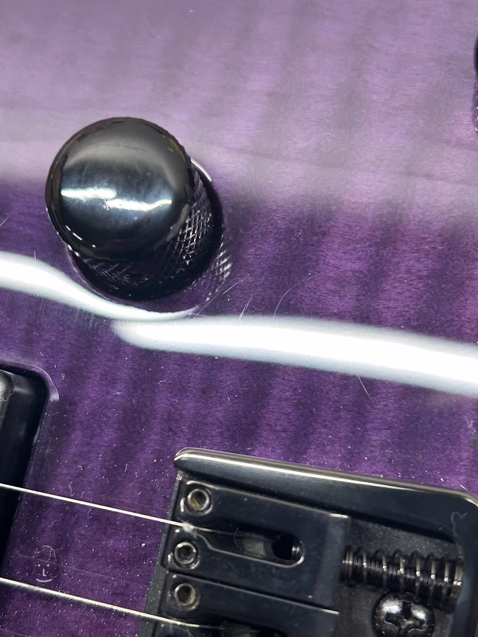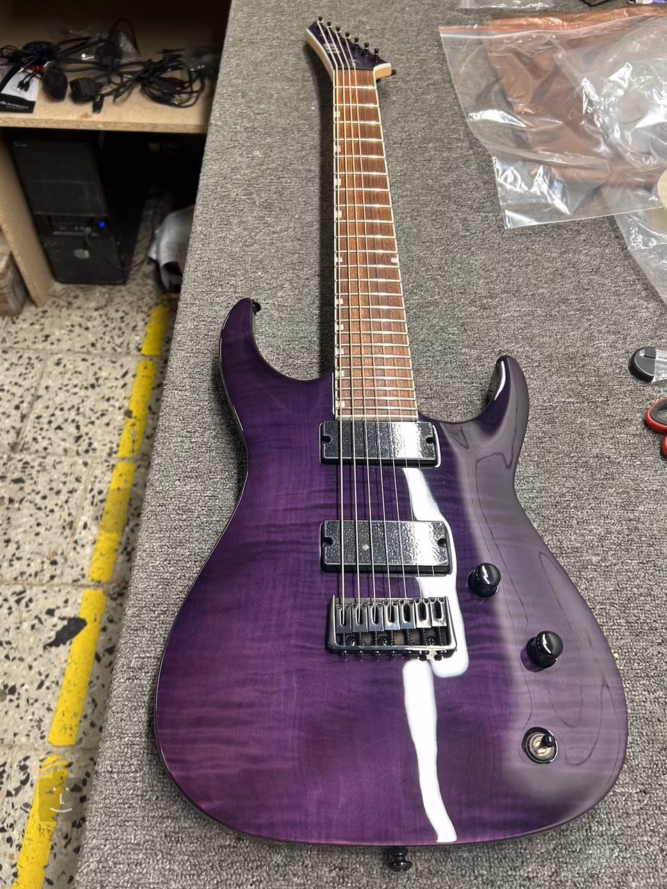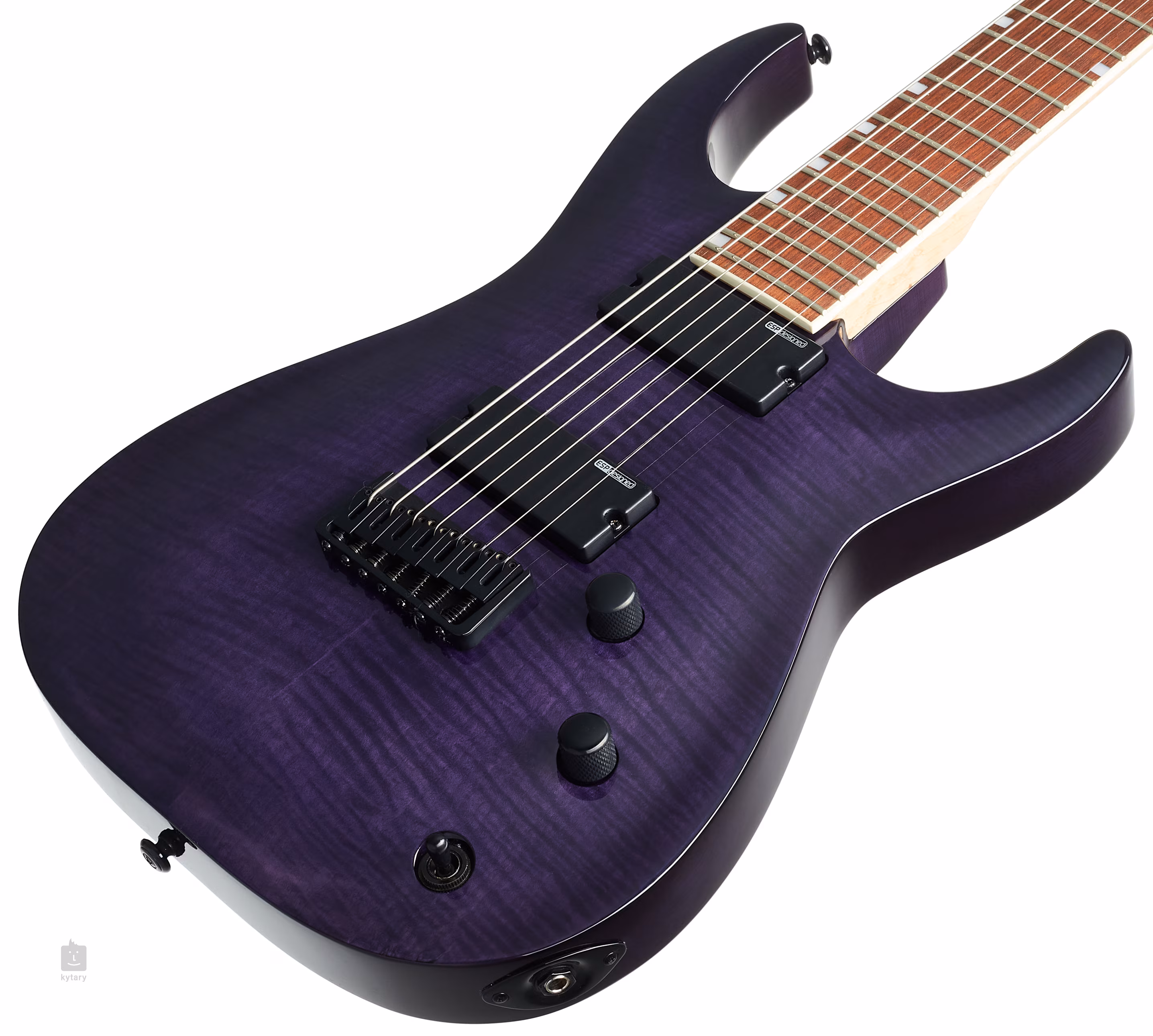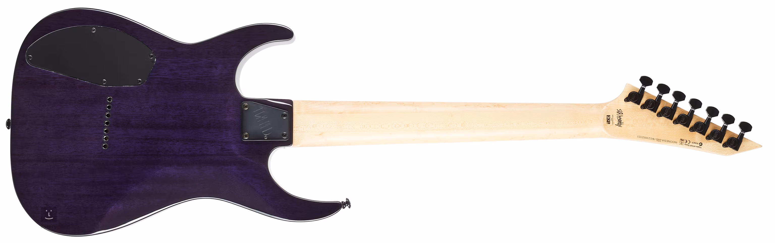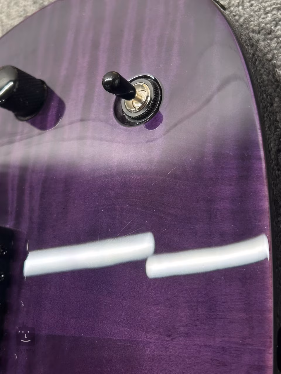 Zwei passive Humbucker der Firma mit hohem Ausgangssignal verleihen der Gitarre den nötigen Drive. Der Klangcharakter lässt sich serienmäßig über Volume-Potentiometer, Tone-Shutter und dreistufigen Pickup-Schalter einstellen. Die Saiten werden in den hauseigenen Stimmmechaniken und einer massiven Brücke mit Saitenverankerung durch den Korpus gehalten. Der stilvolle Look wird durch das See Thru Purple Farbschema für Korpus und Kopfplatte und die schwarze Hardware unterstrichen.