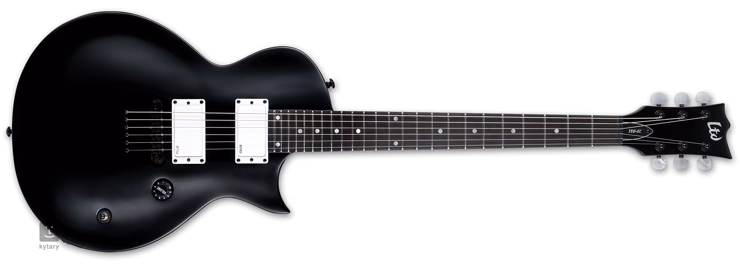 E-Gitarre ESP LTD TED-EC BLK im Single-Cut ESP Eclipse Design ist ein Signature Modell von Ted Aguilar, Gitarrist der kalifornischen Thrash Metal Band Death Angel.
