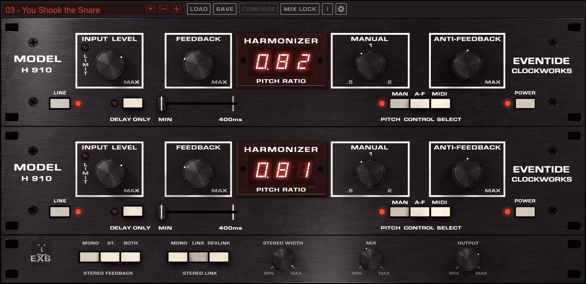 Zusätzlich zum ursprünglichen Mono-Plug-in enthält das Paket auch den H910 Dual, der zwei parallel geschaltete H910 simuliert. Dies ermöglicht Phasen-Stereo-Effekte, Cross-Feedback, dichte Klangüberlagerungen und räumliche Experimente, die das volle Potenzial dieses Instruments entfalten.