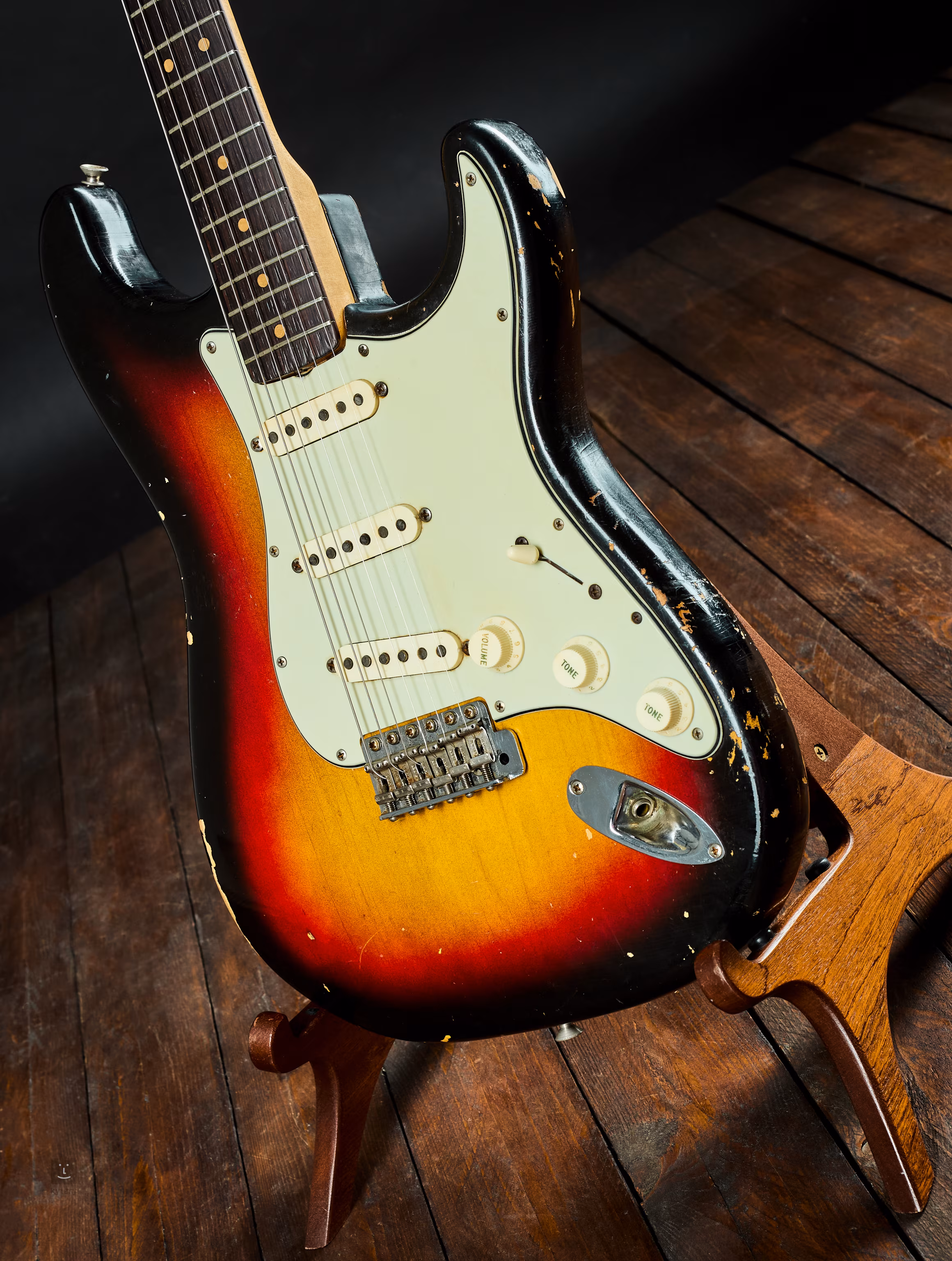 Ein Sammlerschmankerl von höchster Qualität. Eine originale Stratocaster von 1963 aus der ersten Ära der Marke, als Leo Fender selbst die Produktion leitete und die Fabrik in Fullerton, Kalifornien, besaß. Ein wertvolles Artefakt aus einer Zeit, in der der Rock'n'Roll seine Blütezeit erlebte.
