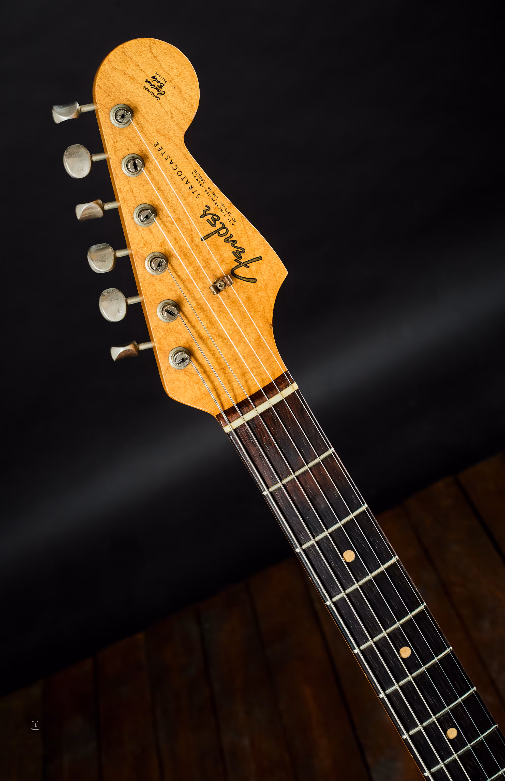 Das Instrument wird mit dem originalen hellen Fender-Koffer, dem originalen Hebel, den Federn und dem Zertifikat von Garrett Park Guitars angeboten, wo es 2013 von einem Sammler als Instrument im Originalzustand geschätzt und gekauft wurde.
