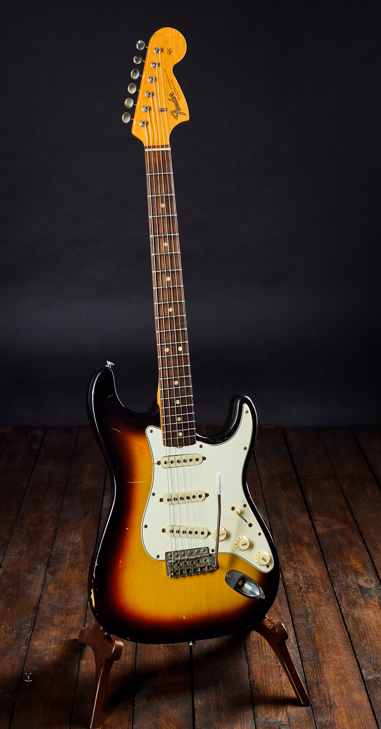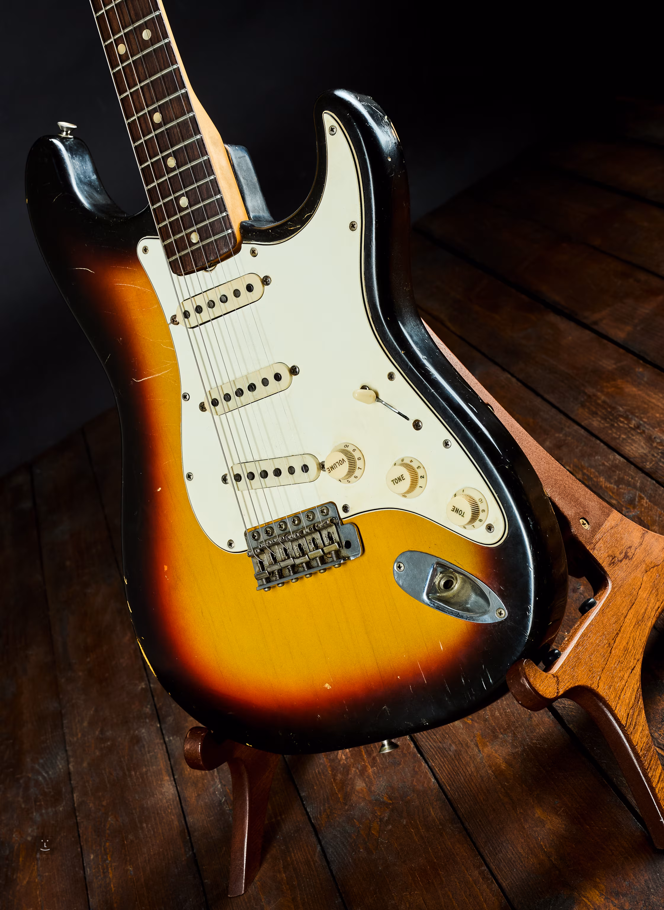 Ein Relikt aus den 1960er Jahren, ein Stück aus der Frühgeschichte der Pop- und Rockmusik. Eine Stratocaster, die man als Gitarre im Originalzustand bezeichnen kann. Nur wenige von ihnen haben bis heute überlebt, und es werden noch weniger werden.