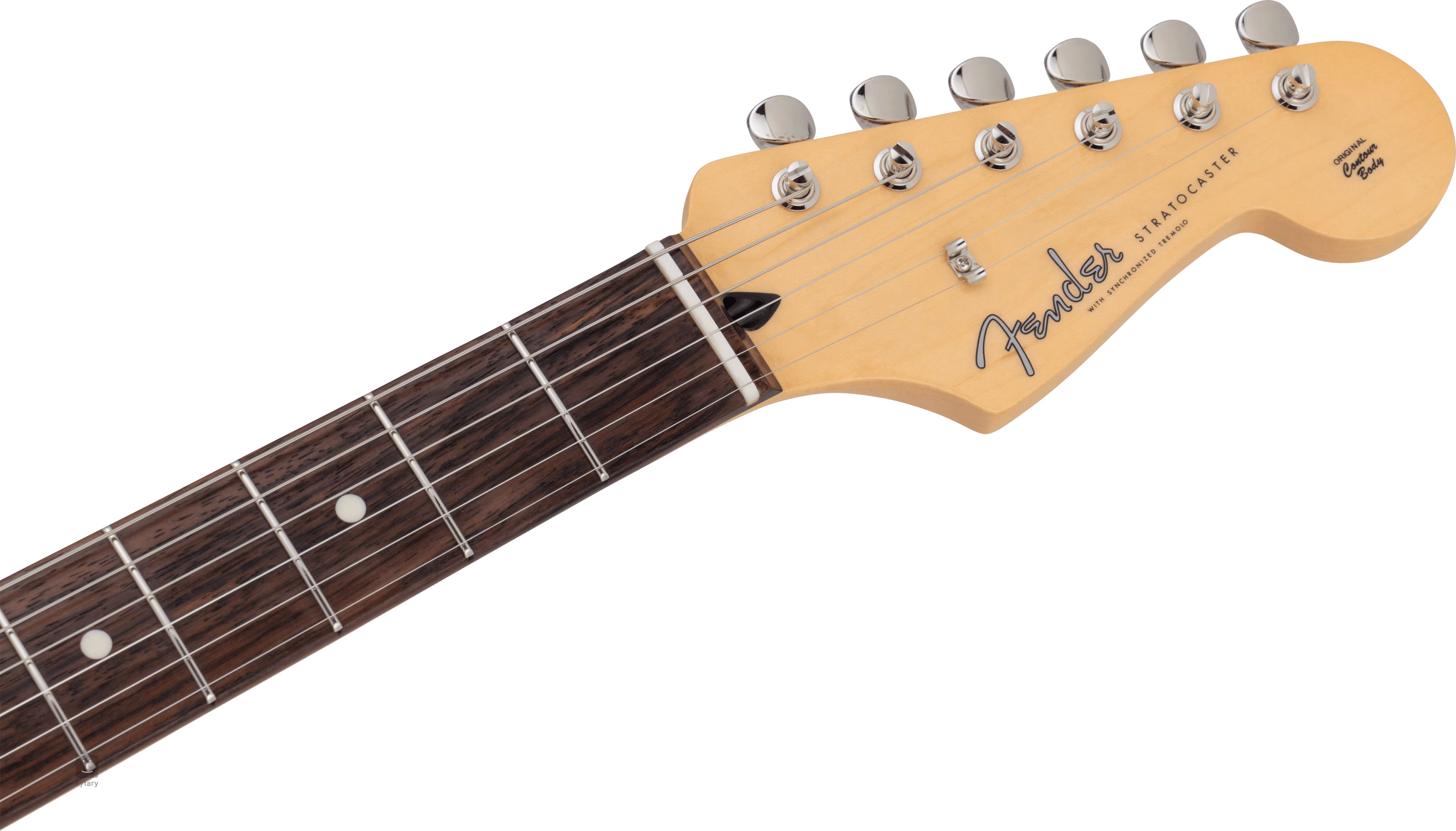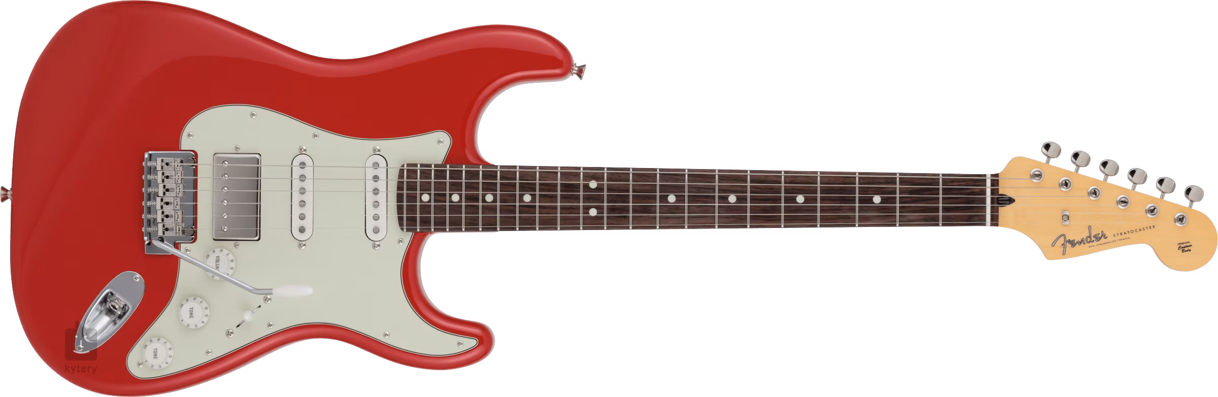 Der Korpus der 2024 Collection Made in Japan Hybrid II Stratocaster HSS Modena Red ist aus Erle gefertigt. Ein Palisandergriffbrett mit zweiundzwanzig Narrow Tall-Bünden ist auf einen Ahornhals mit komfortablem "Modern C"-Profil geklebt. Weiße Positionspunkte auf dem Griffbrett erleichtern die Orientierung.
