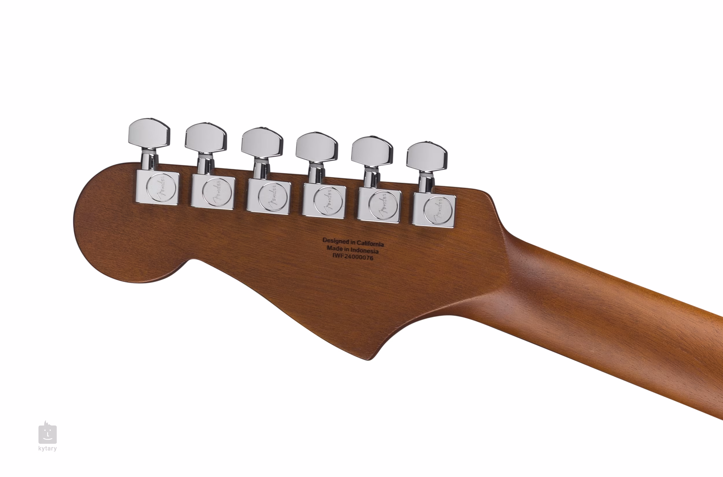 Der Ton wird von zwei Tonabnehmern eingefangen. Ein magnetischer Shawbucker-Tonabnehmer sorgt für den authentischen Ton von Fender-E-Gitarren, während die Welt der elektroakustischen Gitarren durch einen Underdrive-Piezotonabnehmer repräsentiert wird. Mit zwei Gitarrenreglern lassen sich die Lautstärke und das Humbucker/Piezo-Verhältnis einstellen.