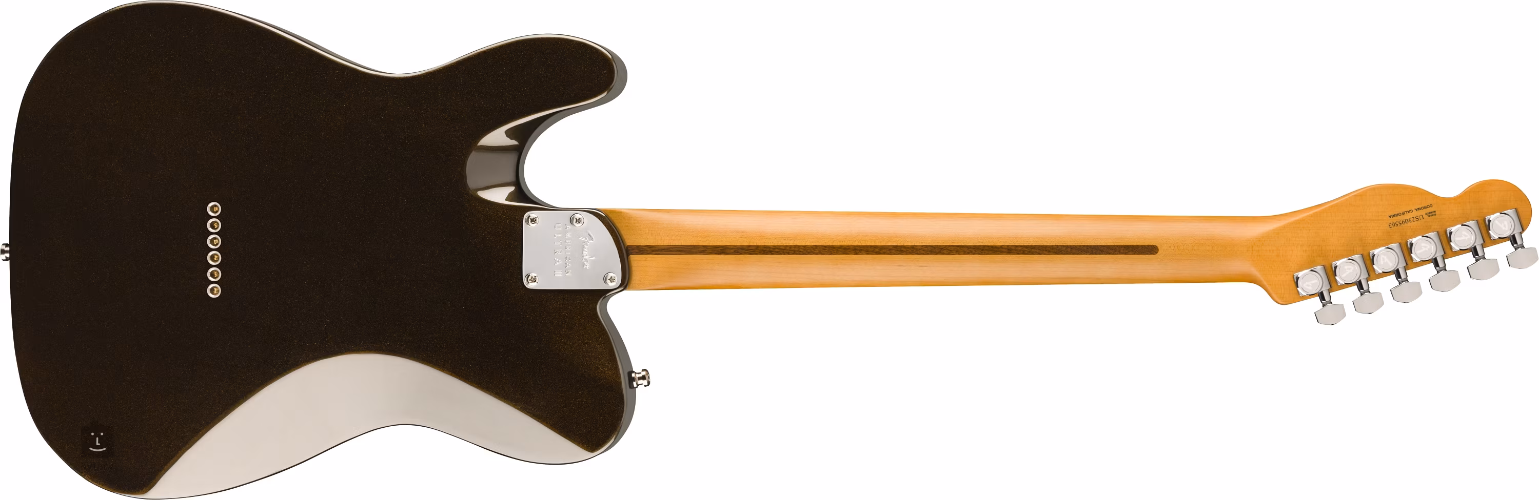 Der Erle-Korpus der American Ultra II Telecaster EB TXT bietet die traditionellen Merkmale der American Ultra-Serie in Form von ergonomischen Korpusausschnitten und einem abgeschrägten Halsfuß, der auch in höheren Griffbrettpositionen einen idealen Sitz gewährleistet. Der Ahornhals mit "Modern D"-Profil, d.h. einem schmaleren Hals mit breiteren Schultern, abgerundeten Griffbrettkanten, Griffbrettradius (10" - 14") und zweiundzwanzig Medium Jumbo-Bünden garantiert sowohl komfortables Akkordspiel am Nullbund als auch die bequeme Ausführung von schnellen Soli (Shred). Die Leuchtpunkte an der Seite des Griffbretts erleichtern die Orientierung, auch in der Dämmerung.