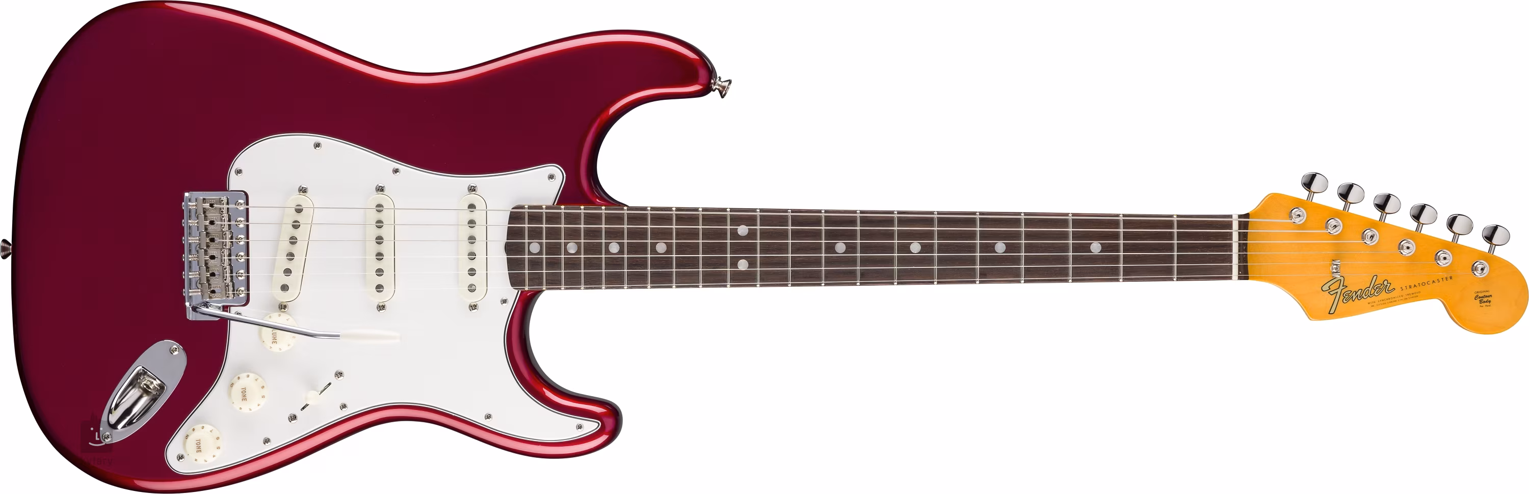 Pure Vintage '65 Gray-Bottom Single-Coil Strat-Tonabnehmer verleihen der Gitarre einen authentischen Klang und ein authentisches Spielgefühl. Die Konturen des Klangs lassen sich mit den Lautstärkepotentiometern, der Tonblende und dem Fünf-Positionen-Kippschalter einstellen. Die Saiten sind in Pure Vintage Single Line "Fender Deluxe" Mechaniken und einem synchronisierten American Vintage Tremolo untergebracht. Das stilvolle Finish wird durch ein dreilagiges Schlagbrett akzentuiert.