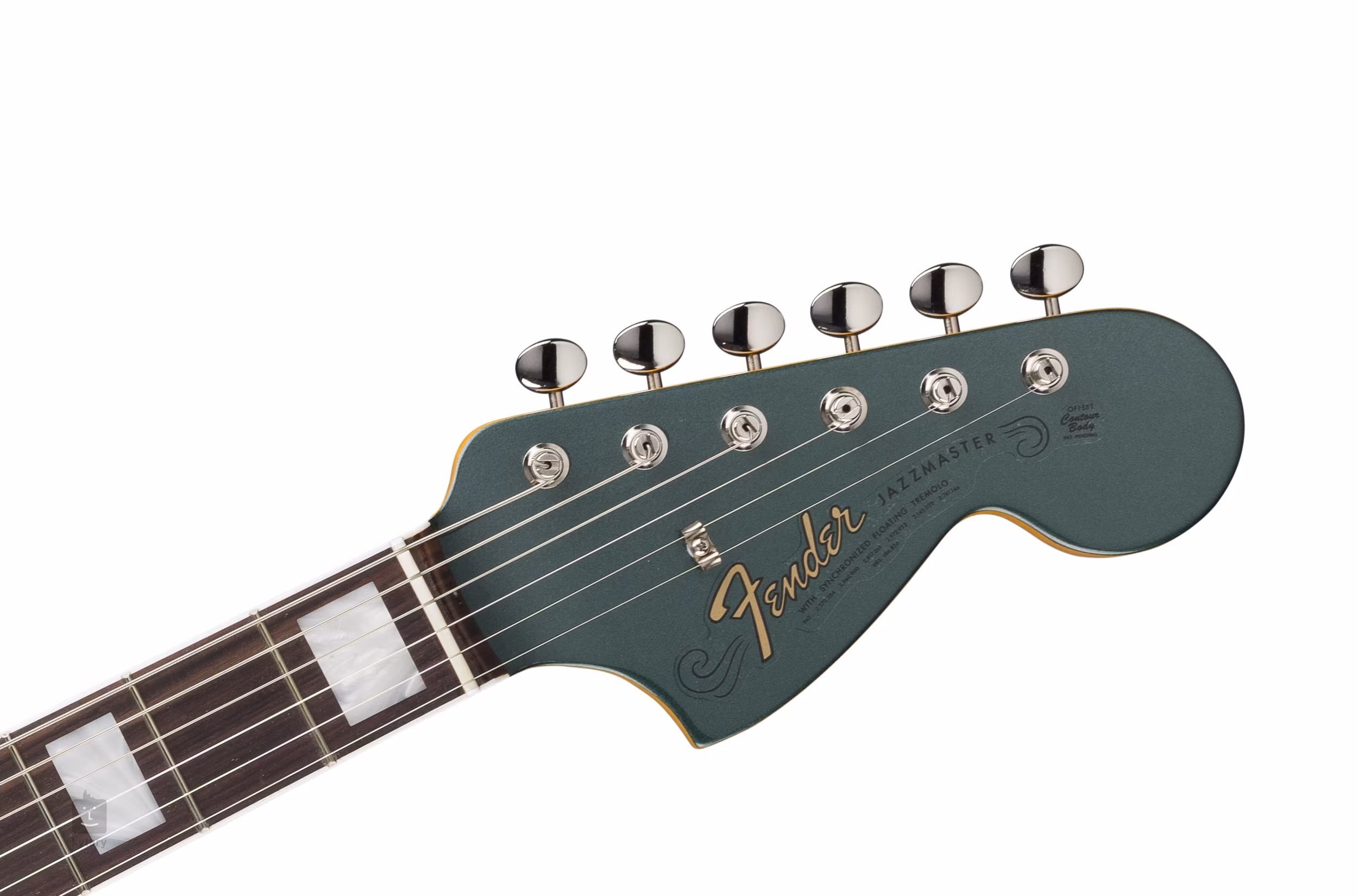 Die Saiten sind in Pure Vintage Single Line "Fender Deluxe" Mechaniken und über eine verstellbare Stahlsattelbrücke in einem Jazzmaster Floating Tremolo gelagert.