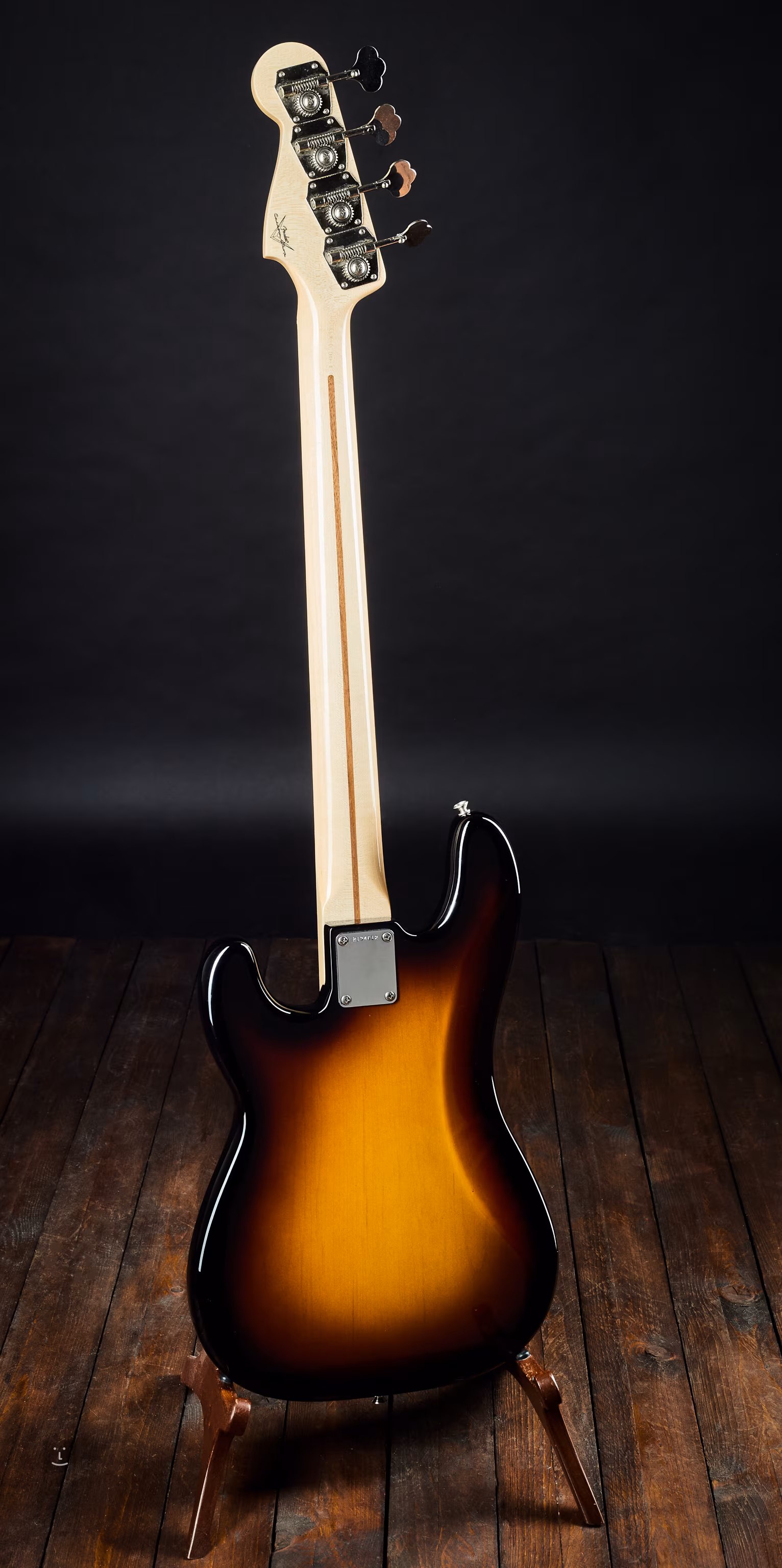 Der Korpus des Basses ist aus zwei Teilen Erle gefertigt. Dieses Instrument wurde nach ähnlichen Spezifikationen wie die Originalmodelle aus den frühen 1950er Jahren hergestellt, einschließlich der NOS-Lackierung (New Old Stock). Er ist eine gute Wahl für alle anspruchsvollen Musiker und Kenner, die gelegentlich davon träumen, wie es gewesen wäre, in den 1950er Jahren in ein Geschäft in den USA zu gehen und einen brandneuen Fender zu kaufen.