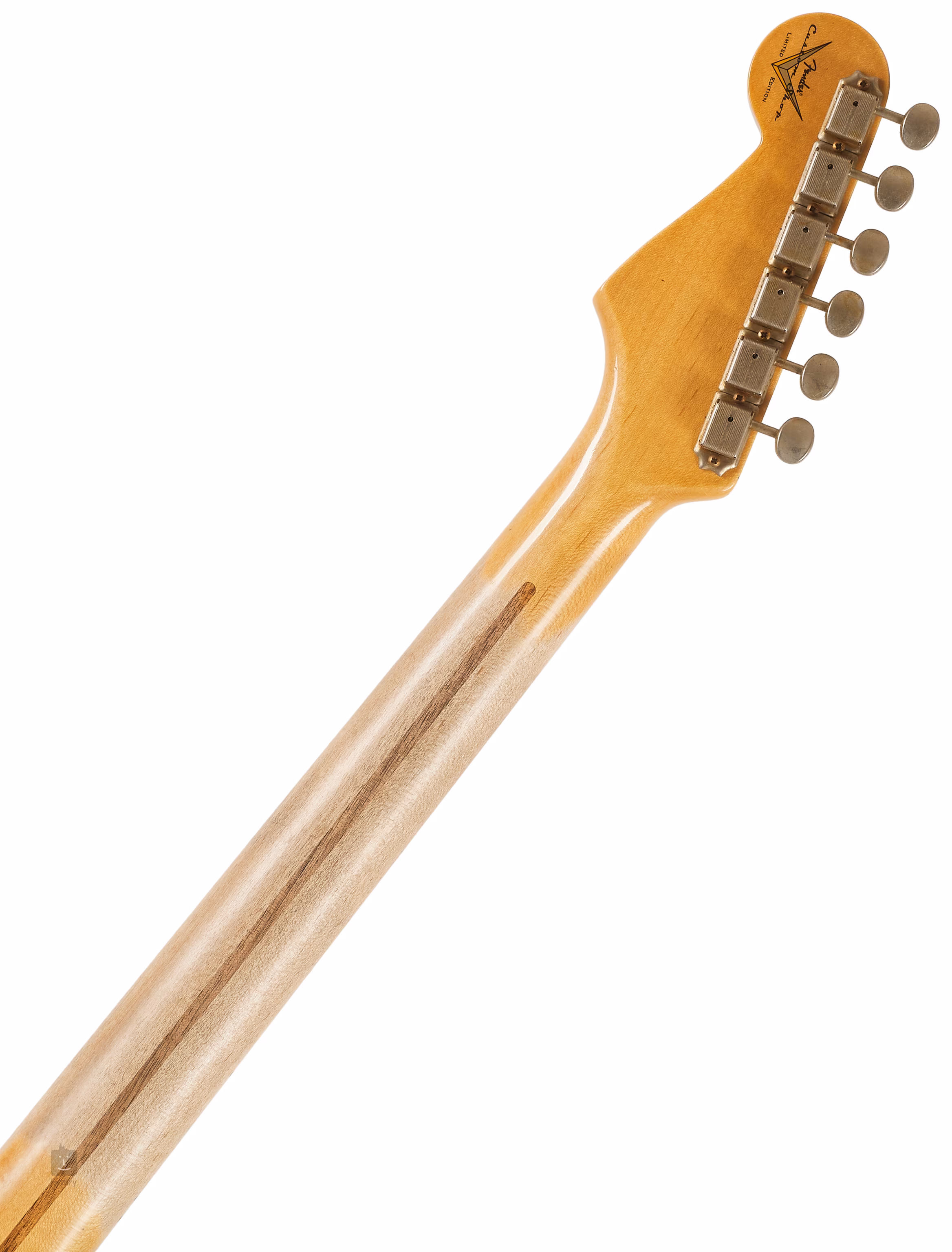 Die Saiten sind in den hauseigenen Vintage-Stimmmechaniken und dem synchronisierten Custom Shop Vintage-Tremolo gelagert. Das stilvolle Finish wird durch ein einlagiges helles Strat-Schlagbrett akzentuiert.