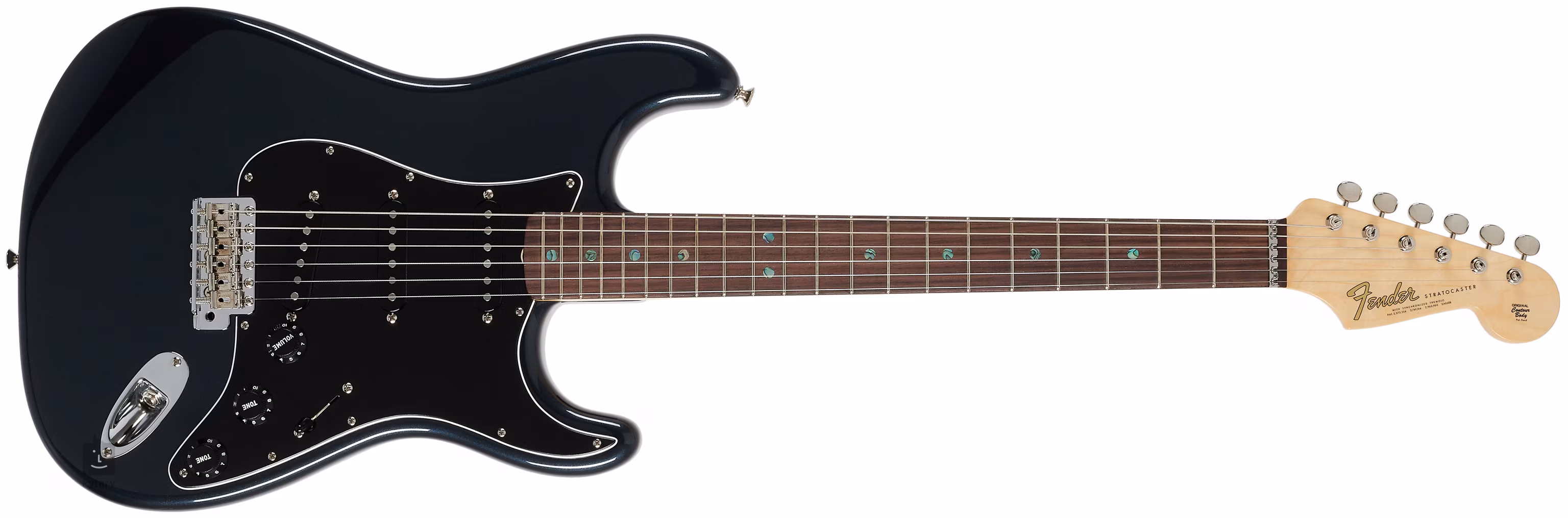 Der zweiteilige Erlenkorpus verfügt über ein Mercedes Blue-Finish und eine NOS (New Old Stock)-Lackierung, bei der es sich um eine absolut authentische Lackierung der Originale aus den 50er und 60er Jahren handelt, ohne die Elemente künstlicher Patina und Alterungserscheinungen in Form von verblichenem Lack. Ein Palisander-Griffbrett in AAA-Qualität mit einundzwanzig Narrow Tall (6105) Bünden ist auf einen Ahornhals mit einem C"-Profil der 65er Strat geleimt. Die Orientierung auf dem Griffbrett wird durch vordere und seitliche Perlmutt-Positionspunkte (Abalone) erleichtert.