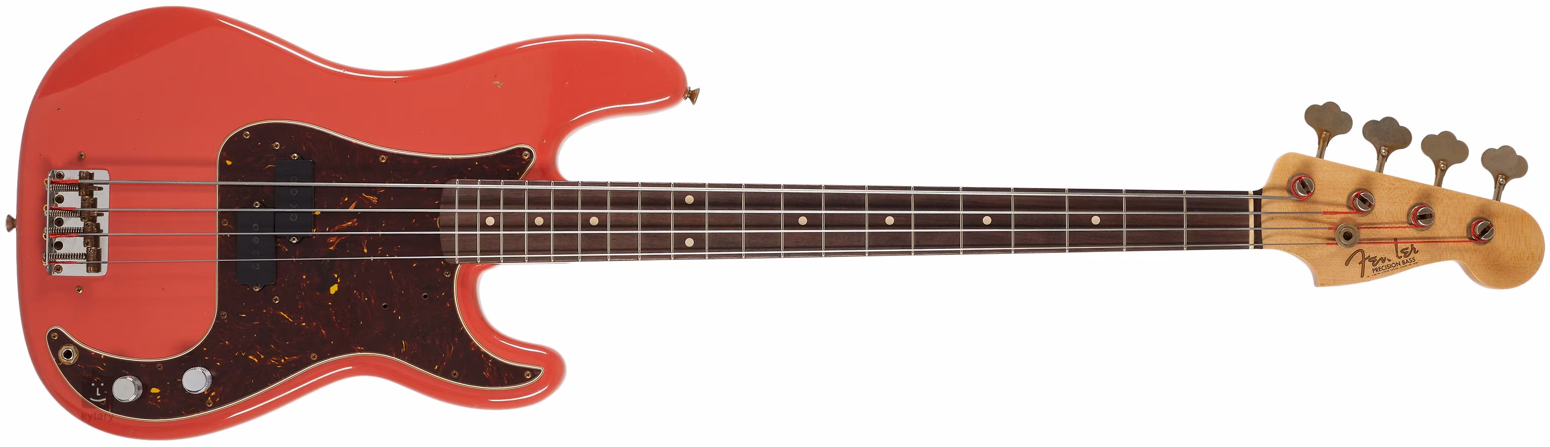 Der Pino Palladino Signature Precision Bass Fiesta Red over Desert Sand verfügt über einen leichten Erlenkorpus, einen Ahornhals mit C-Profil und Palisandergriffbrett, einen speziell gewickelten, geteilten Vintage-Single-Coil-Precision-Bass-Tonabnehmer, ein Schildpatt-Schlagbrett und Thomastik-Infeld-Saiten. Die "Fiesta Red over Desert Sand"-Lackierung des Journeyman Relic bietet Elemente einer unechten Patina, die zu jahrzehntelangem, eher häuslichem Gebrauch passen.