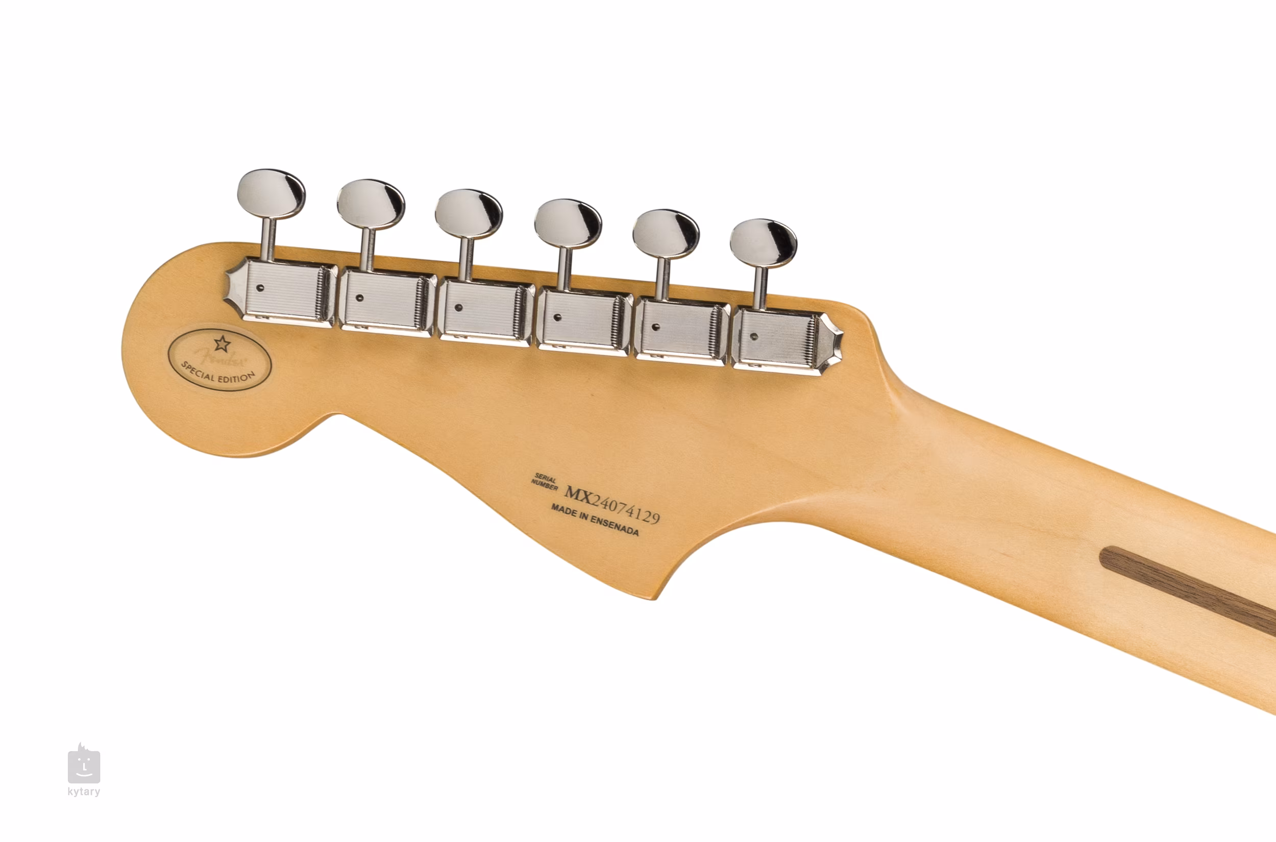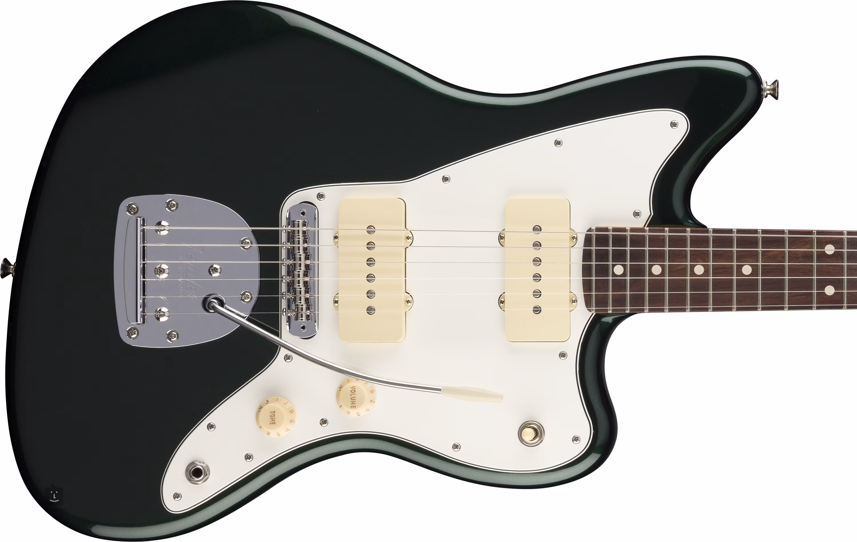 Zwei Single-Coil-Tonabnehmer der Player-Serie mit Alnico-5-Magneten verleihen der Gitarre ein moderneres Fender-Gefühl und einen Sound, den Sie in einer Vielzahl von Musikstilen schätzen werden. Der Klangcharakter lässt sich mit den Lautstärke- und Tonreglern und dem dreistufigen Pickup-Schalter beeinflussen. Die Saiten sind in ClassicGear-Mechaniken mit einem Übersetzungsverhältnis von 18:1 und schwebenden Vintage-Tremolo-Messing-Mustang-Sätteln über dem Steg montiert. Der stilvolle Look der Gitarre wird durch ein helles dreilagiges Schlagbrett und eine Lackierung in British Racing Green unterstrichen.