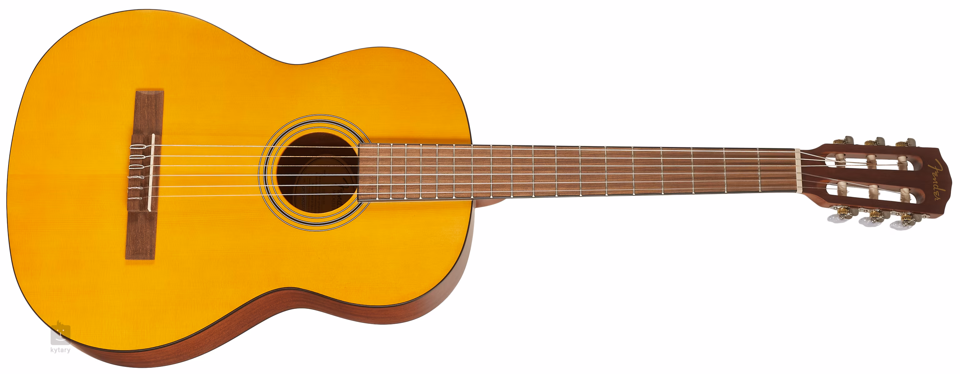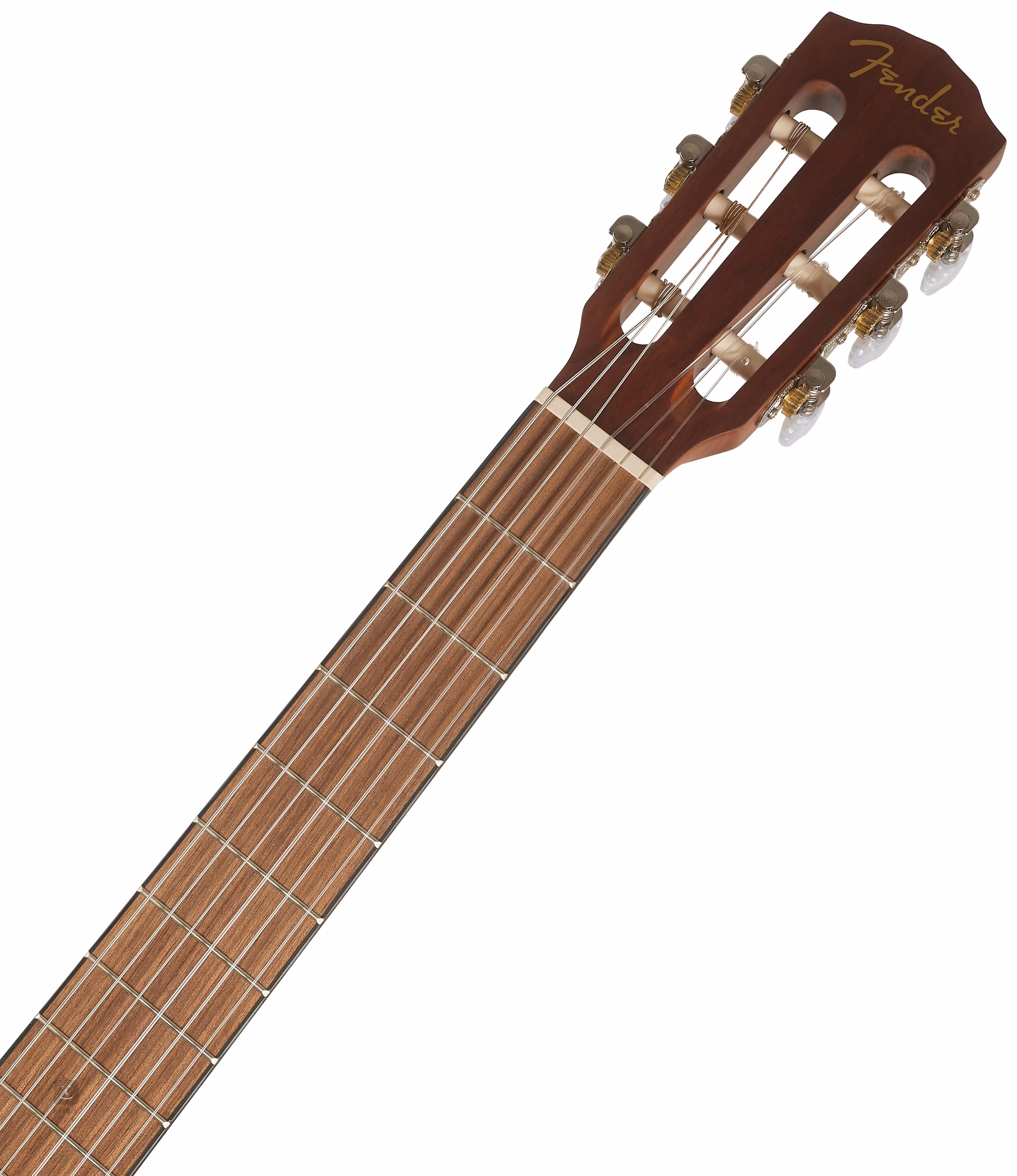 Die Fender Squier ESC 105 Konzertgitarre ist ein erschwingliches Instrument, das sich besonders für Anfänger eignet. Der geschichtete Korpus der Gitarre besteht aus Fichtenfront und Okoumé-Boden und -Zargen. Der schmalere Hals (44,5 mm Breite am Nullbund) ist auf ein mit achtzehn Bünden versehenes Nussbaum-Griffbrett geklebt. Die Saiten sind in einem Griffbrett aus Walnussholz und klassischen offenen Stimmmechaniken mit Wirbeln aus Perlmuttimitat verankert. Der traditionelle Look wird durch die Satin Vintage Natural-Lackierung von Korpus und Hals, eine Rosette mit schwarzen und weißen Ringen und das Logo auf der Kopfplatte unterstrichen. Die Gitarre wird in einem Gigbag geliefert.