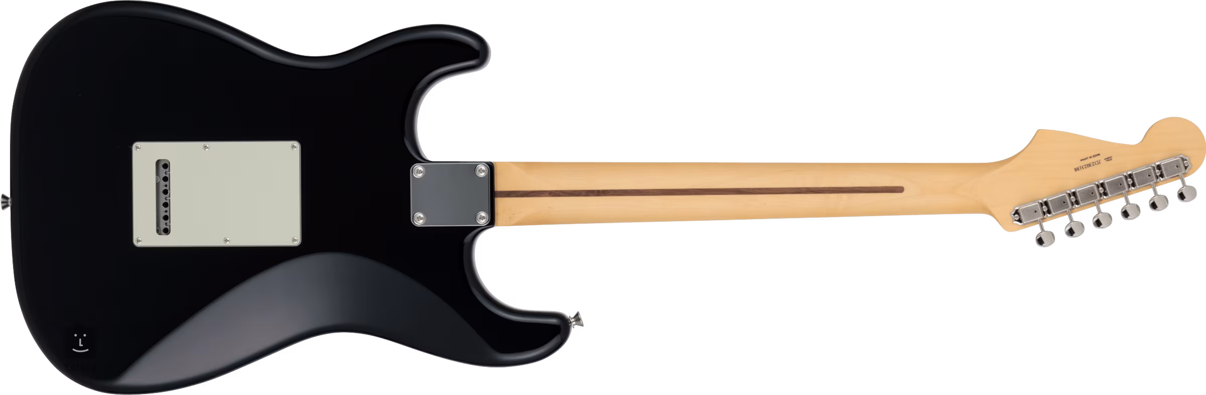 Der Korpus der 2024 Collection Made in Japan Hybrid II Stratocaster HSH Black ist aus Erle gefertigt. Ein Palisandergriffbrett mit zweiundzwanzig Narrow Tall-Bünden ist auf einen Ahornhals mit komfortablem "Modern C"-Profil geklebt. Weiße Positionspunkte auf dem Griffbrett erleichtern die Orientierung.