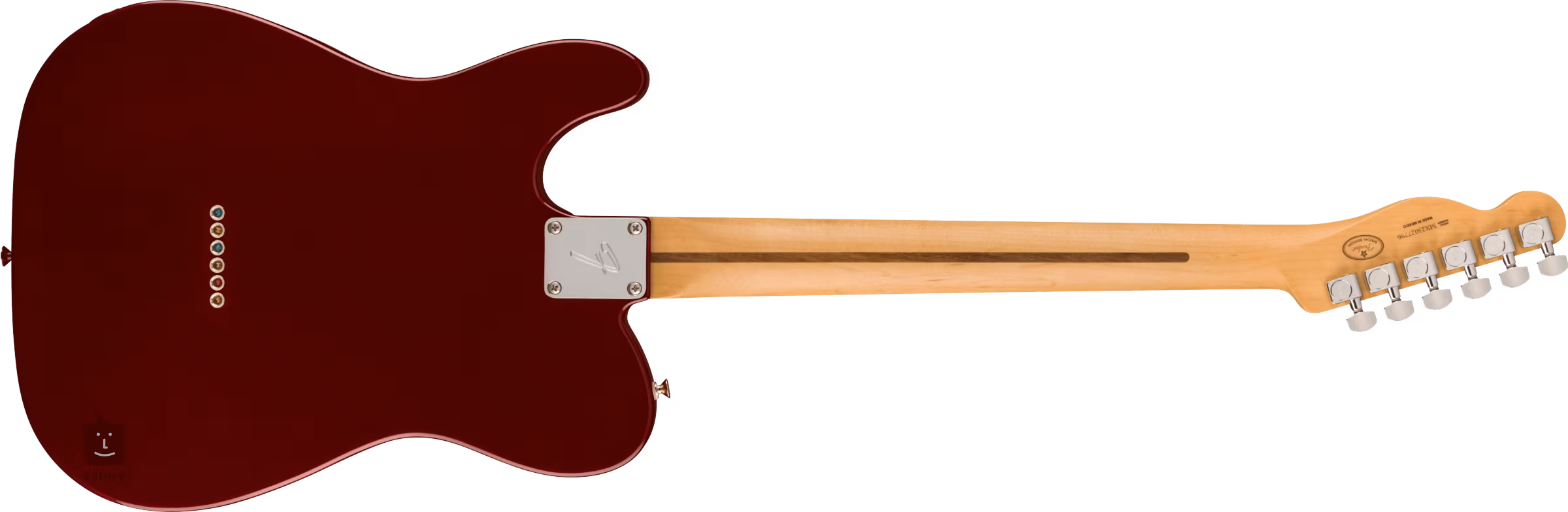 Der Erlenkorpus der Player Telecaster aus der limitierten Serie der Marke ist mit einem Oxblood-Finish versehen. Der geschraubte Ahornhals mit einem gefälligen Modern-C-Profil ist mit einem Ebenholzgriffbrett mit 22 Medium-Jumbo-Bünden verleimt. Positionsmarkierungen auf dem Griffbrett erleichtern die Orientierung.
