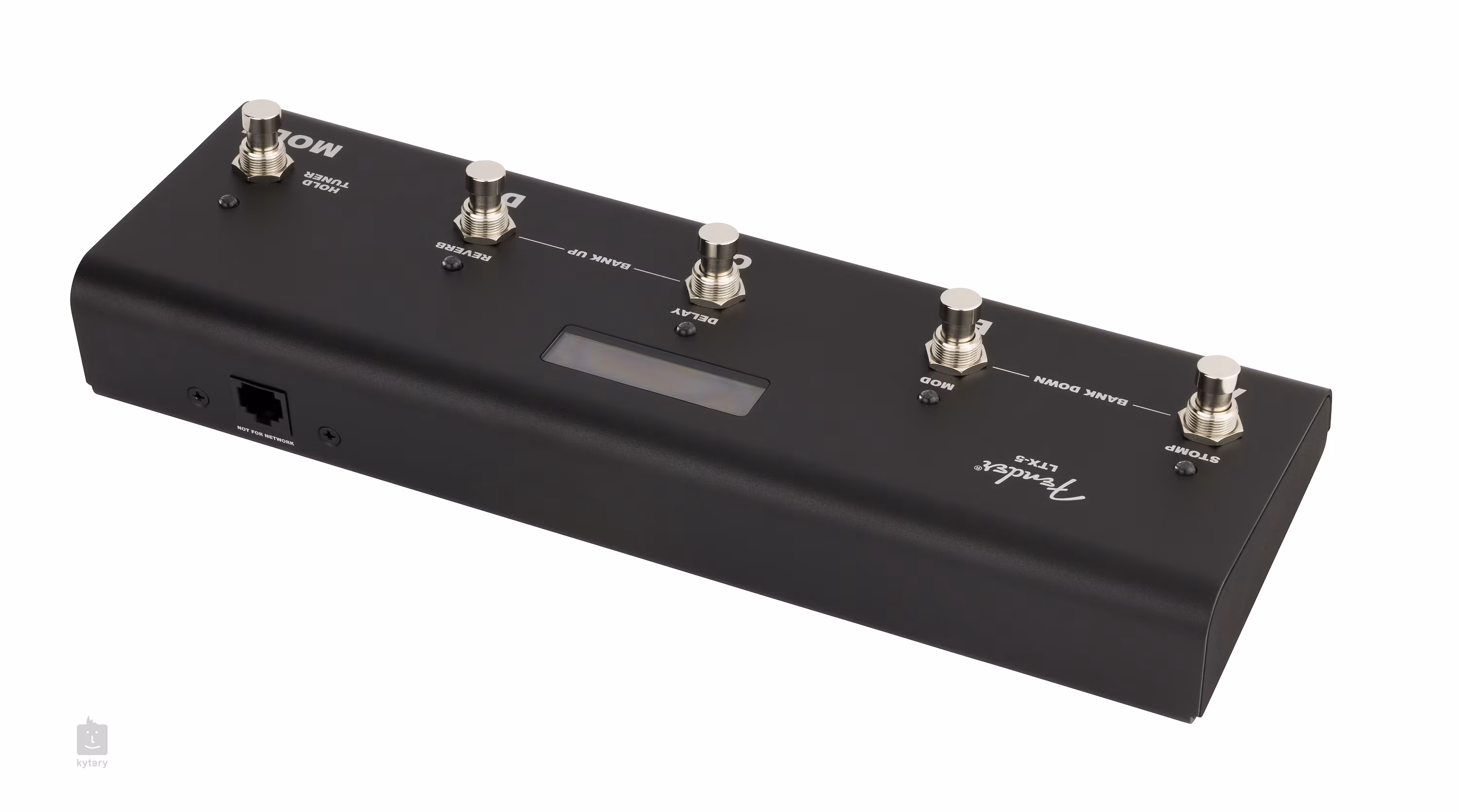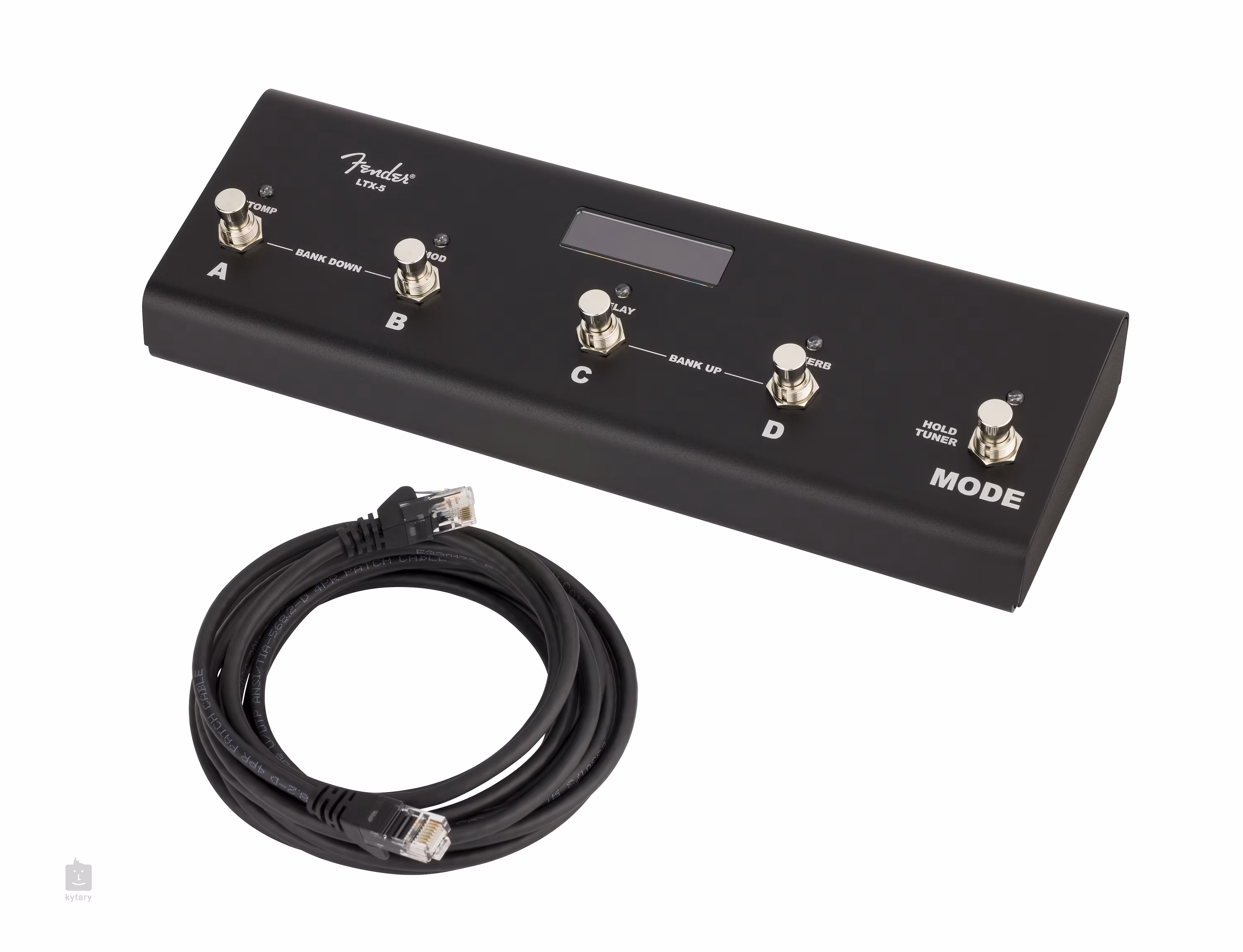 Mit dem Fender LTX-5 Fußschalter hast du die Kontrolle über deinen Sound. Er bietet dir fünf reaktionsschnelle Schalter zur Steuerung deines Mustang LTX 50 oder 100 Verstärkers. Mit ihnen können Sie durch die Bänke blättern, zwischen den Presets wechseln und die Effekte in Ihrer Effektkette steuern - für die Effekte Stomp, Modulation, Delay und Reverb gibt es eigene Fußschalter. Außerdem gibt es eine Tap-Tempo-Funktion und ein integriertes Stimmgerät, das auf einem klaren LED-Display angezeigt wird, wenn es ausgelöst wird. Im Lieferumfang enthalten ist auch ein 3,5 m langes Kabel mit RJ45-Steckern für den Anschluss des Fußschalters an Ihre Gitarre.