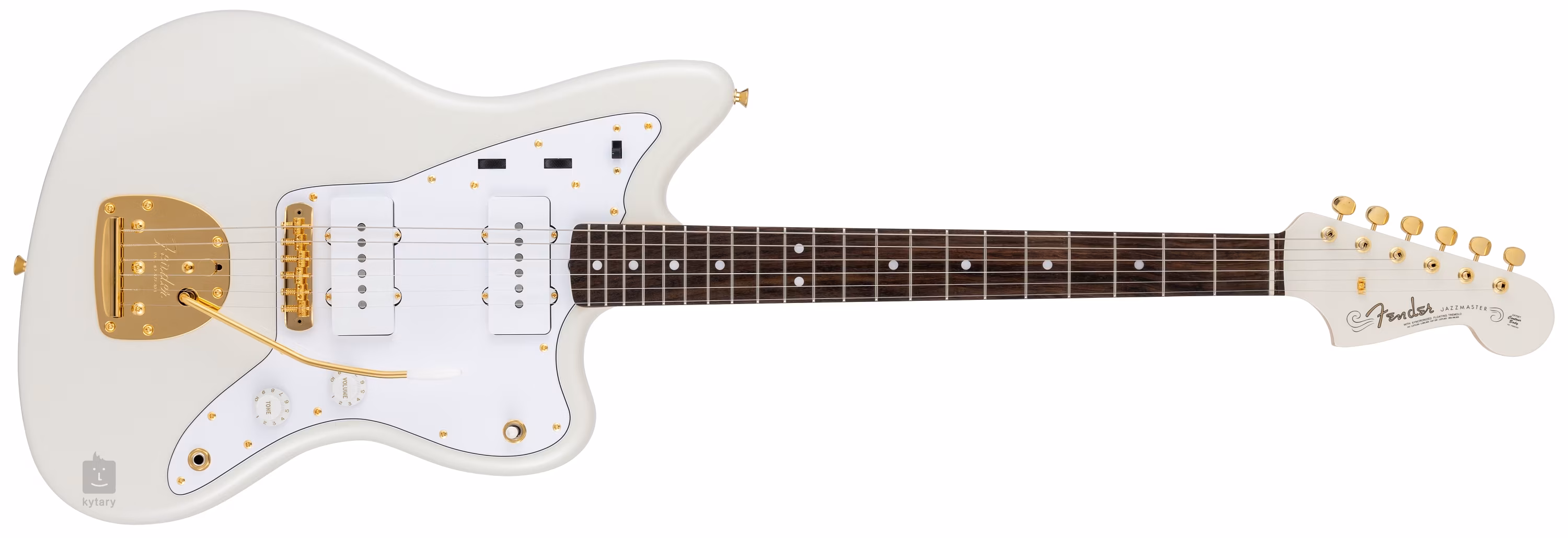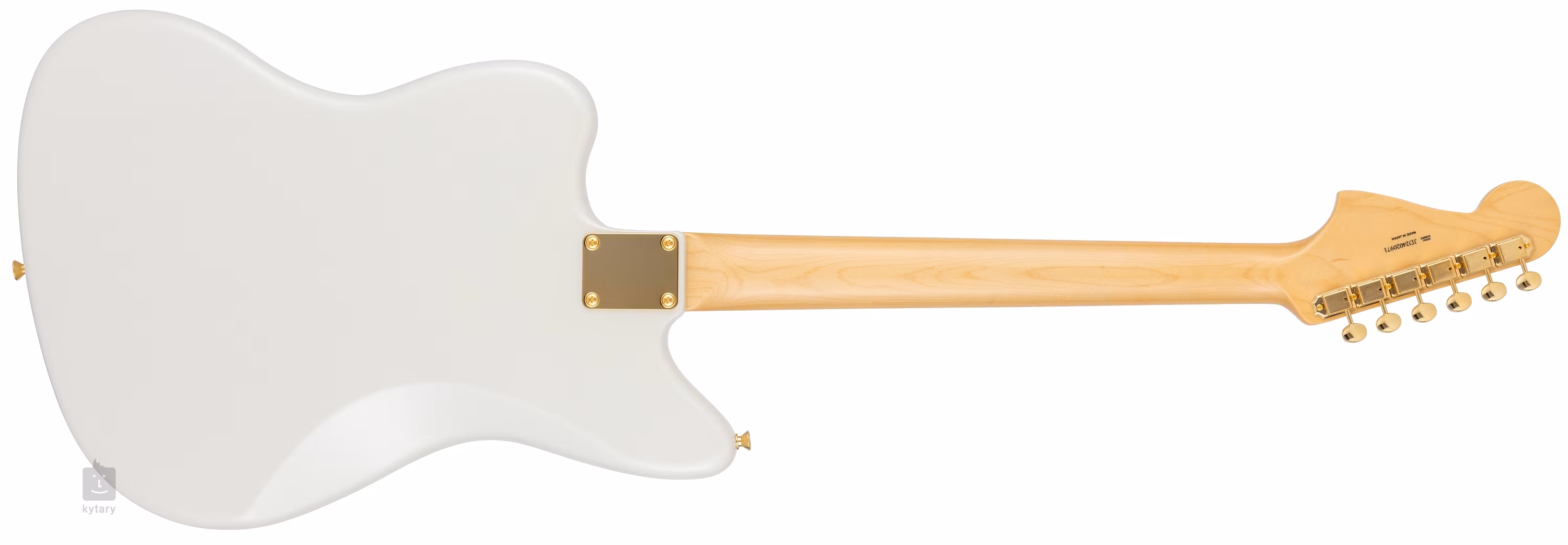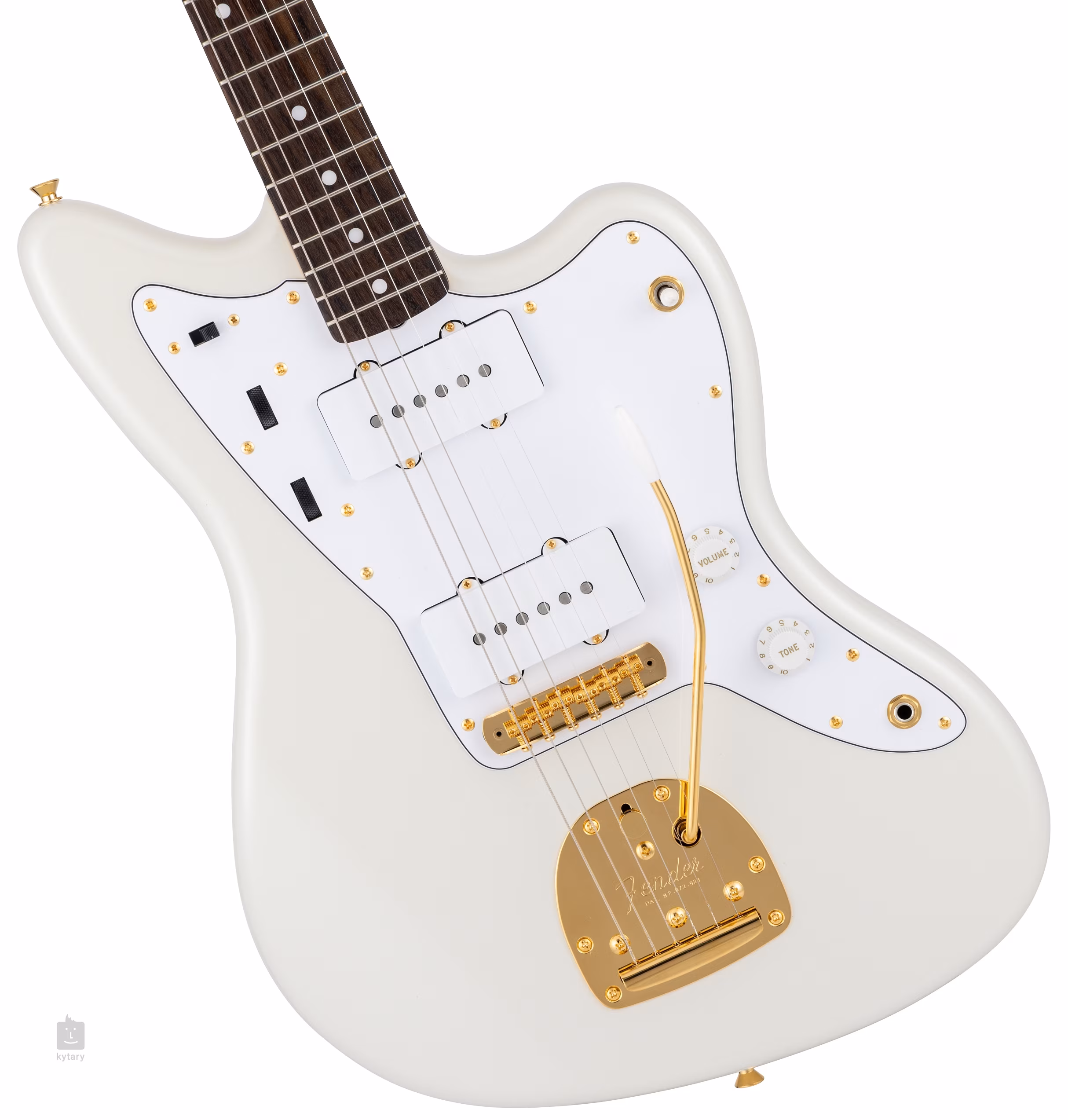 Das Wort Jazzmaster im Namen deutet auf die ursprüngliche Intention hin, aber dieses Instrument mit seiner typischen Offset-Korpusform wird nicht wirklich mit Jazz in Verbindung gebracht - es hat unter Musikern aus der alternativen Musikszene (von Surf-Rock bis Indie-Rock) an Popularität gewonnen. Der Lindenkorpus des Instruments ist mit einem glänzenden Polyesterlack und White Pearl Finish verziert. Der Ahornhals mit U-Profil ist auf ein Palisander-Griffbrett mit einundzwanzig Bünden in Vintage-Größe geklebt. Die Orientierung auf dem Griffbrett wird durch Positionspunkte aus Perlmutt erleichtert.