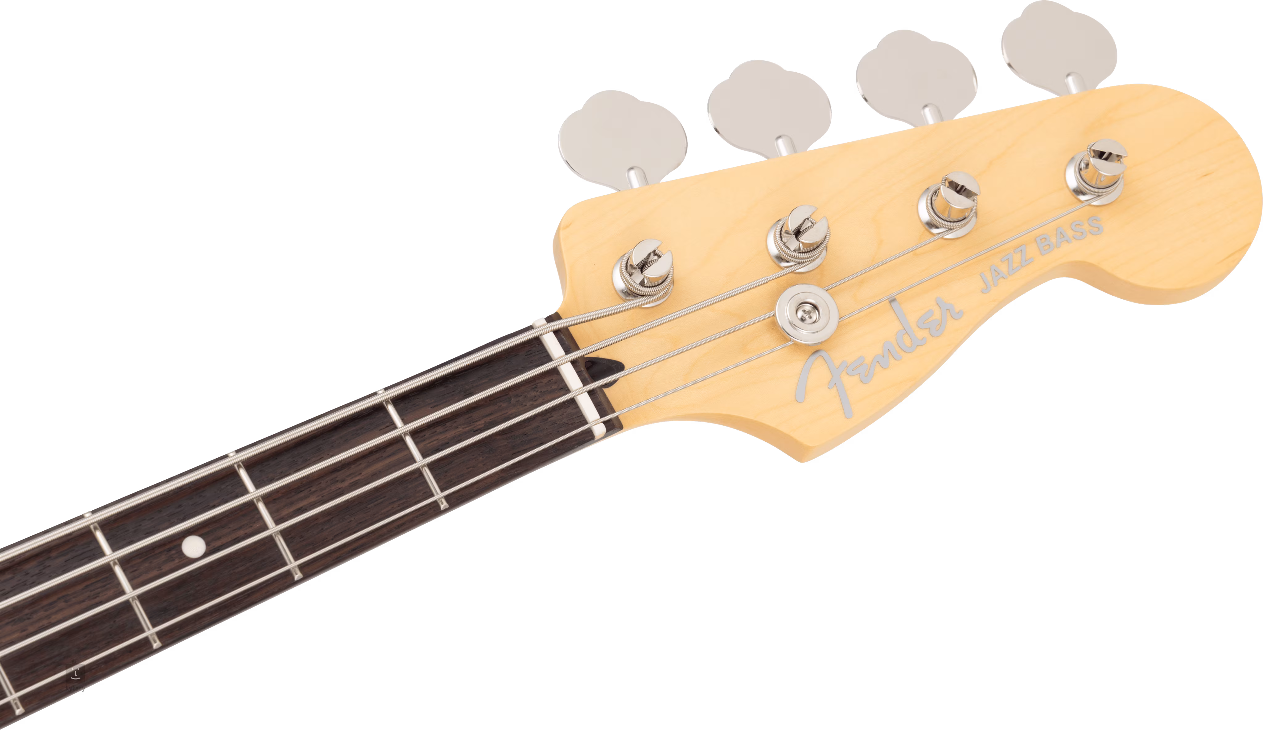 Ein Paar Vintage Jazz Bass Single-Coil-Tonabnehmer verleihen dem Bass einen Sound und ein Spielgefühl mit klar erkennbarer Fender-DNA. Die Konturen des Sounds lassen sich mit den Standardreglern einstellen. Die Saiten sind in den Vintage-Stimmmechaniken des Unternehmens über einem Knochenbund Null und in einem Vier-Sattel-Saitenhalter gelagert. Das stilvolle Finish wird durch ein vierlagiges Schlagbrett aus Schildpatt-Imitat und das Fender Jazz Bass-Logo auf der Kopfplatte akzentuiert.