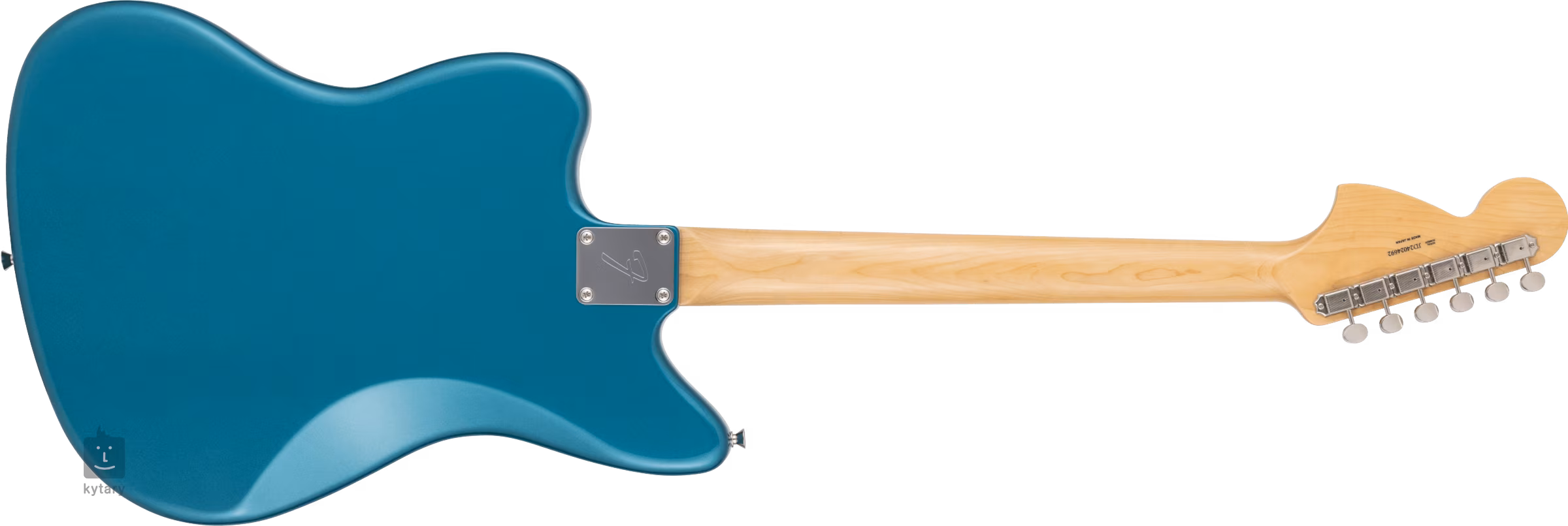 Das Wort Jazzmaster im Namen deutet auf die ursprüngliche Intention hin, aber dieses Instrument mit seiner typischen Offset-Korpusform hat nicht viel mit Jazz zu tun - es hat unter Musikern der alternativen Musikszene (von Surf-Rock bis Indie-Rock) an Popularität gewonnen. Der Lindenkorpus des Instruments ist mit einer glänzenden Polyesterlackierung und der Farbgebung Ocean Turquoise Metallic versehen. Der Ahornhals mit U-Profil ist auf ein Palisandergriffbrett mit einundzwanzig Bünden in Vintage-Größe geleimt. Die Ausrichtung des Griffbretts wird durch Positionsblöcke aus Perlmuttimitat erleichtert.