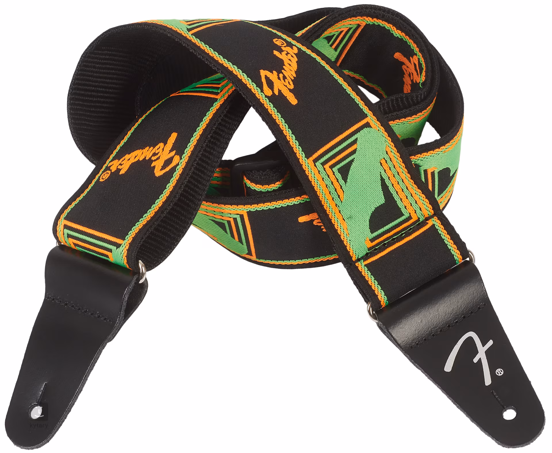 Der stylische Neon Monogram Strap aus dem legendären Hause Fender entführt mit seinem Design in das nächtliche Treiben der Großstadt. Er ist aus strapazierfähigem Polyester gefertigt, das mit einer Breite von 50 Millimetern auch bei längerem Spielen Komfort bietet. Mit einer verstellbaren Länge von 86 bis 150 Zentimetern ist er für alle Spielertypen geeignet und kann auch für andere Instrumente als Gitarre und Bass, wie Mandoline oder Ukulele, verwendet werden.
