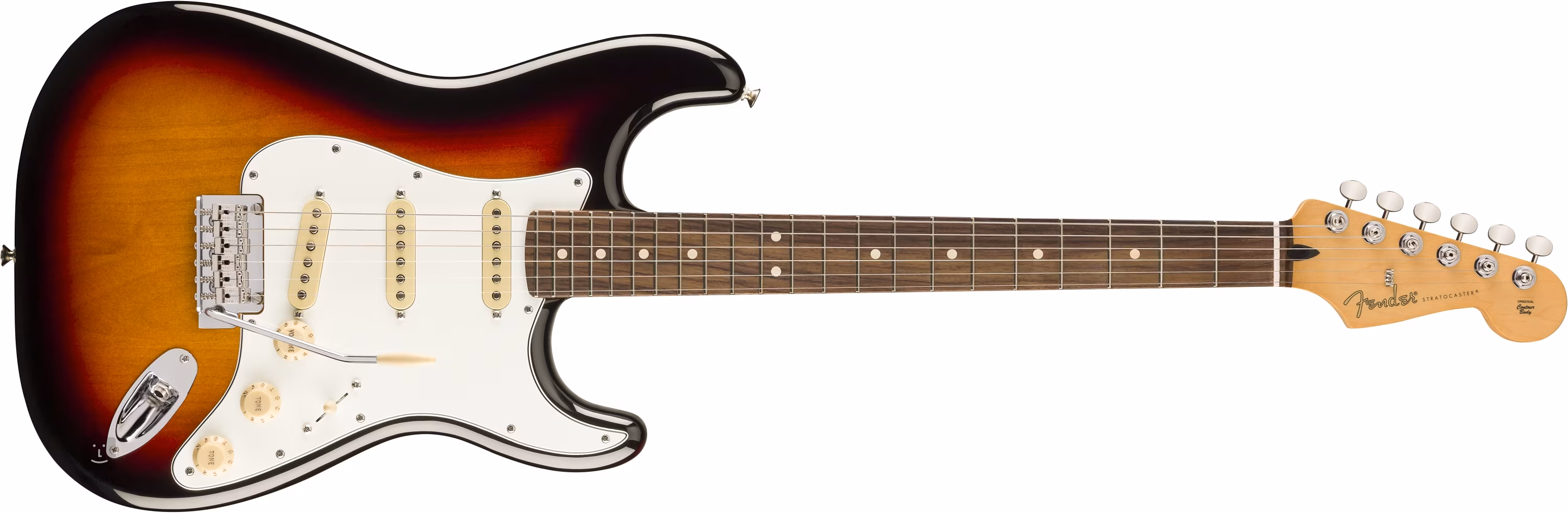 Drei Single-Coil-Tonabnehmer aus der Player-Serie mit Alnico-5-Magneten verleihen der Gitarre ein moderneres Fender-Gefühl und einen Sound, den Sie in einer Vielzahl von Musikstilen schätzen werden. Der Klangcharakter kann mit den Lautstärke- und Tonreglern und dem fünfstufigen Pickup-Schalter beeinflusst werden. Die Saiten sind in ClassicGear-Mechaniken mit einem Übersetzungsverhältnis von 18:1 und einem synchronisierten "2-Punkt"-Tremolo mit Stahlsätteln montiert. Der stilvolle Look der Gitarre wird durch ein helles 3-lagiges Schlagbrett und eine 3-Tone Sunburst-Lackierung unterstrichen.