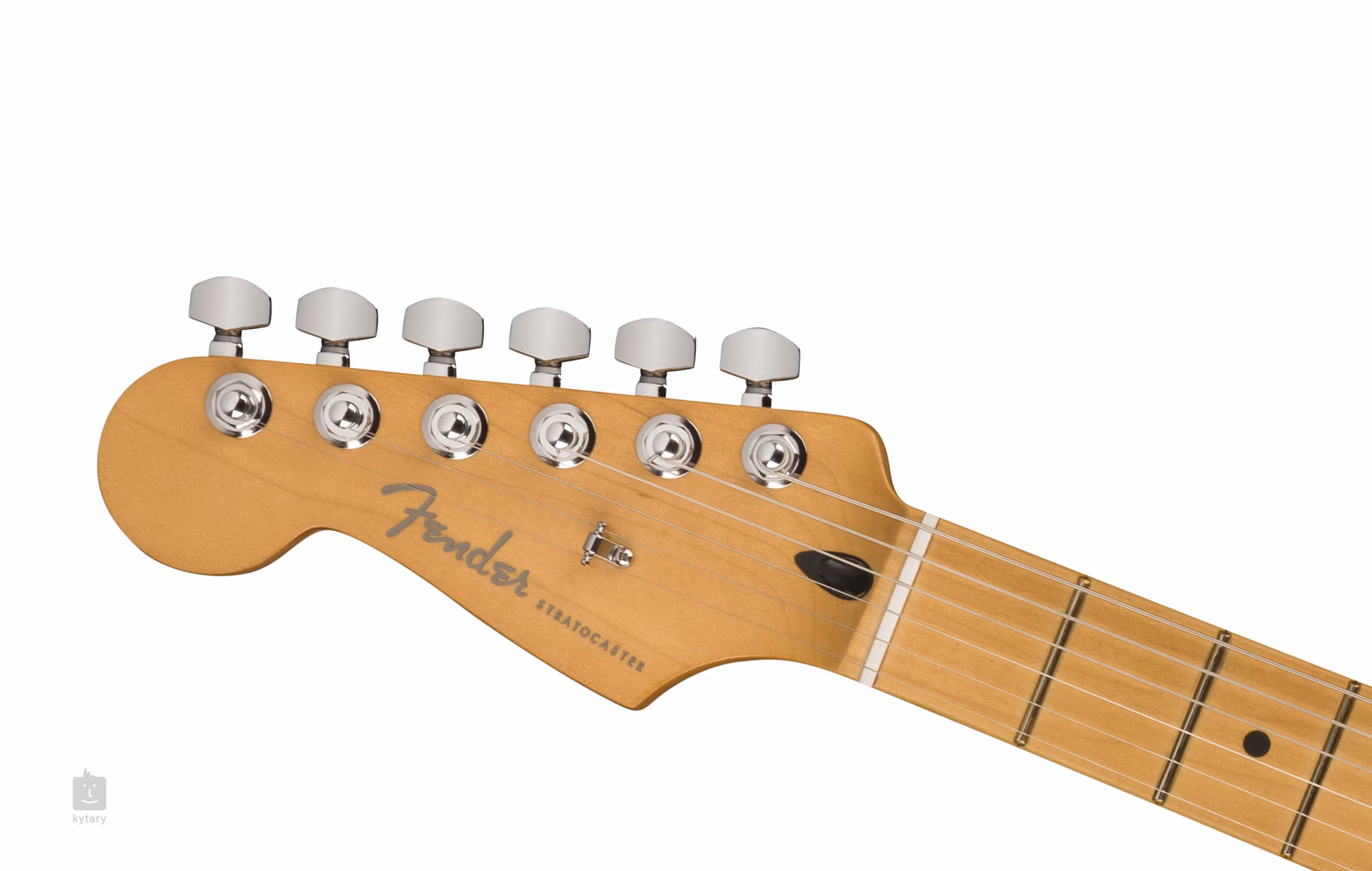 Der Korpus der Player Plus LH MN OP Linkshänder Stratocaster ist aus Erle gefertigt. Der moderne geschraubte Ahornhals mit C-Profil und abgerundeten Kanten bietet optimalen Spielkomfort. Zweiundzwanzig Medium-Jumbo-Bünde und Positionspunkte unterteilen das Ahorn-Griffbrett.