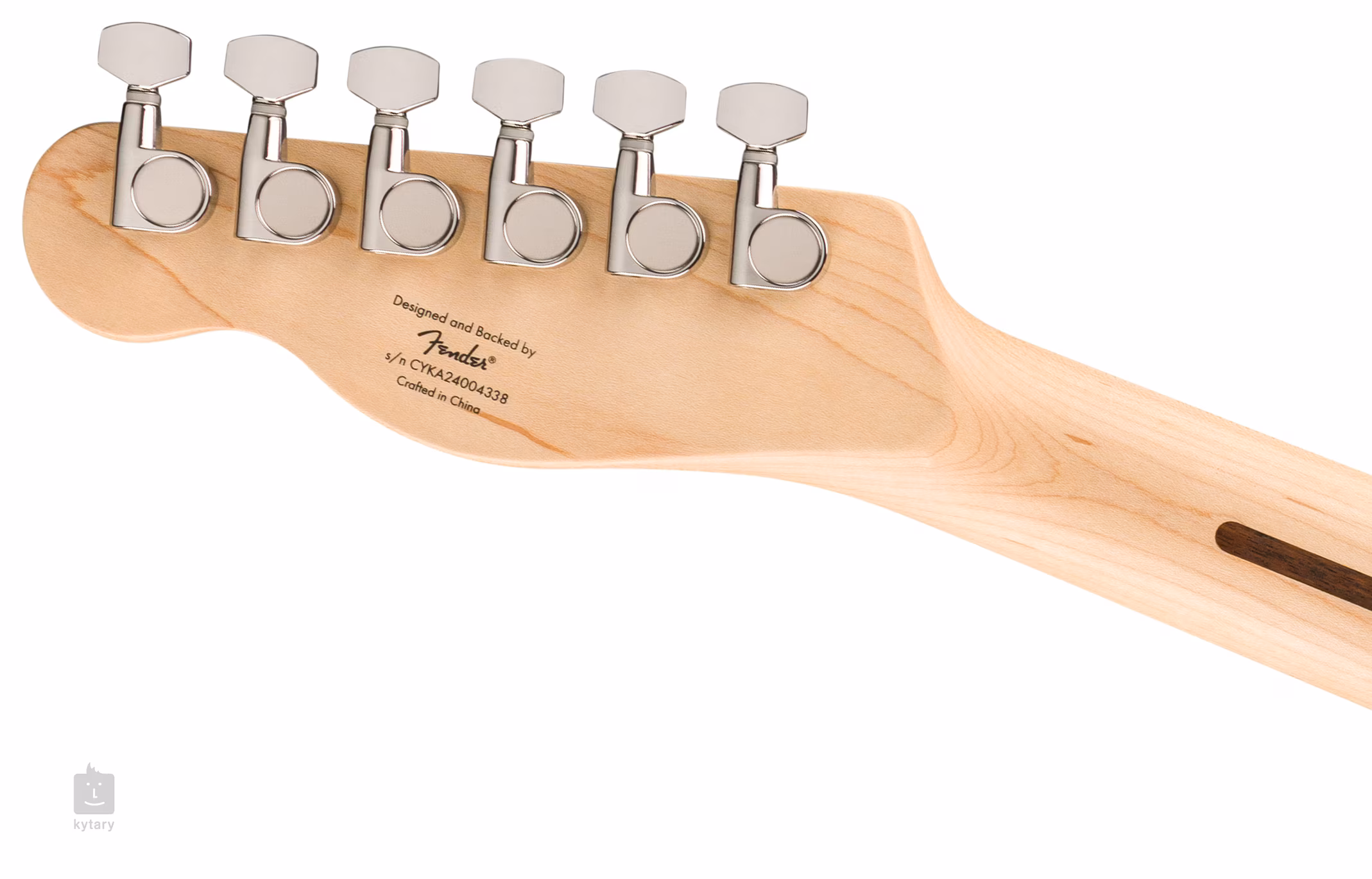 Ein Singlecoil-Saitenhalter und ein Hals-Humbucker mit Keramikmagneten verleihen der Gitarre sowohl den klassischen Telecaster-Twang" als auch einen volleren Humbucker-Sound. Die Saiten sind in den verchromten Druckguss-Mechaniken des Unternehmens und durch die Stahlsättel der Tele im Korpus der Gitarre verankert. Das stilvolle Finish wird durch ein dreilagiges schwarzes Schlagbrett akzentuiert.