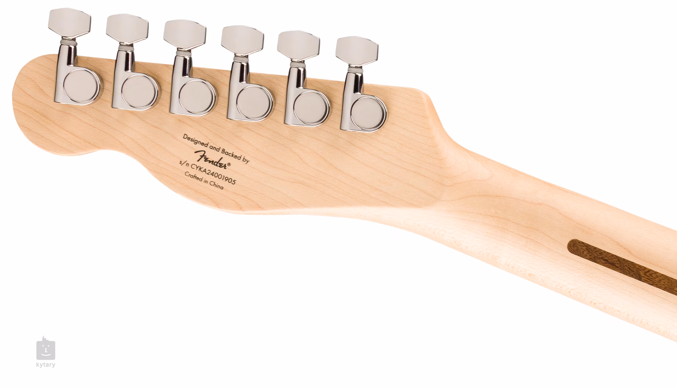 Zwei proprietäre Single-Coil-Tonabnehmer verleihen der Gitarre einen passenden Tele-Twang". Der Klangcharakter lässt sich mit den Lautstärkepotentiometern, der Tonblende und dem dreistufigen Tonabnehmerschalter formen. Die Saiten werden in den verchromten Druckguss-Mechaniken der Firma und durch eine Tele-Brücke mit Stahlsätteln im Korpus der Gitarre verankert. Das stilvolle Finish wird durch ein Olympic White Farbschema und ein dreilagiges schwarzes Schlagbrett akzentuiert.