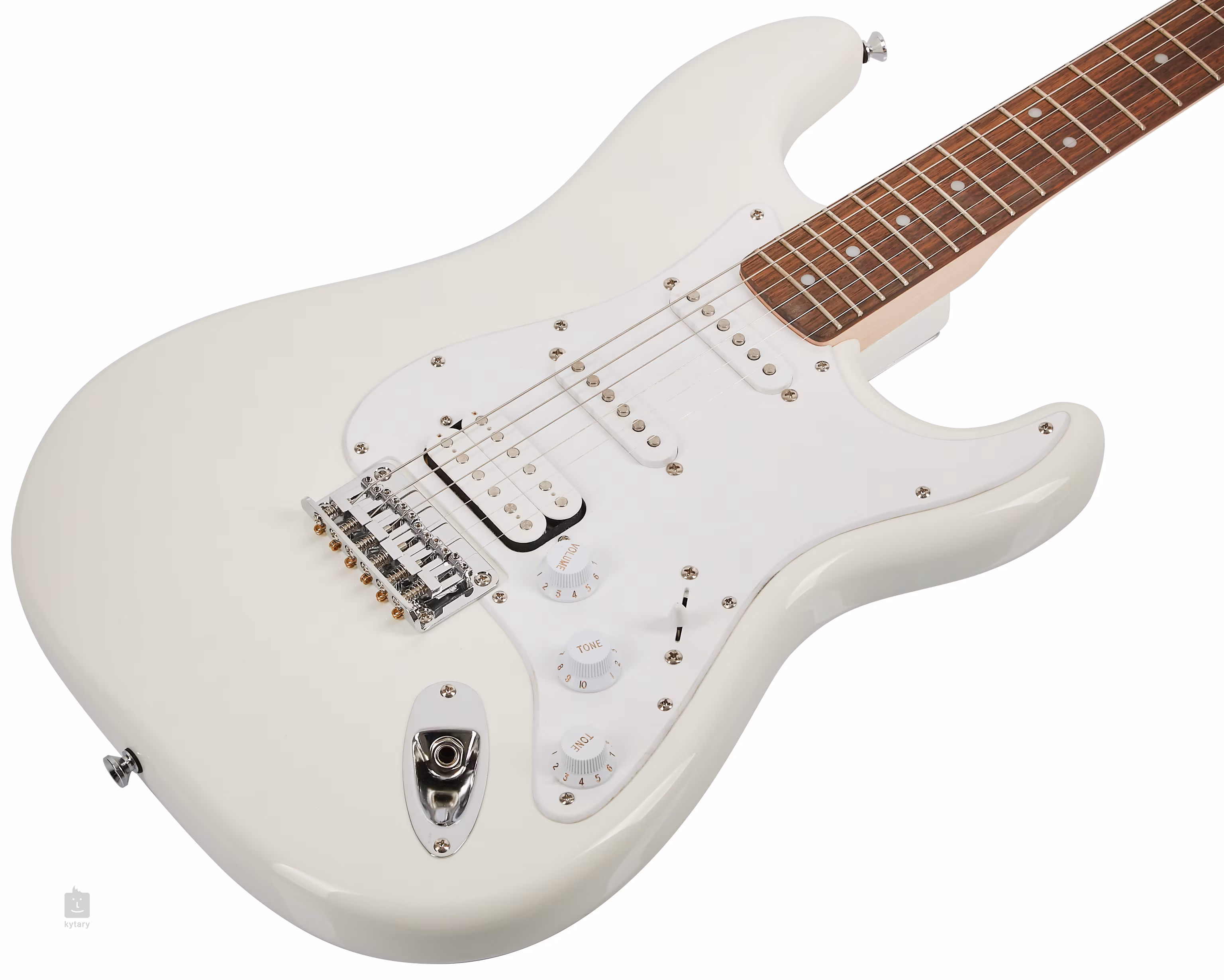 Equipped with a fat-sounding humbucking bridge pickup, two single-coil Stratocaster pickups in the middle and neck positions and five-way switching, the Bullet Strat has the classic Fender sound heard on countless hit records. Its sleek neck provides fast and smooth playability while the improved tuning machines and hardtail bridge ensure rock-solid tuning stability.