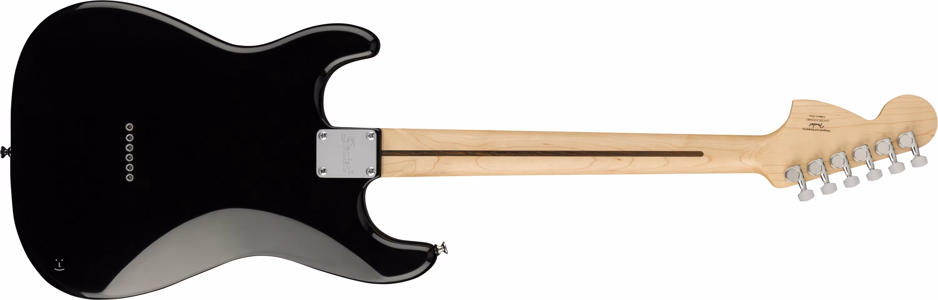 Der leichte und schmale Korpus der Fender Squier FSR Affinity Stratocaster H LRL BLK Limited Edition E-Gitarre (Fender Special Run) ist aus Pappelholz gefertigt. Der geschraubte Ahornhals mit komfortablem "C"-Profil ist auf ein Feigengriffbrett mit zwanzig Medium-Jumbo-Bünden geleimt. Die Orientierung auf dem Griffbrett wird durch Positionspunkte aus Perlmuttimitat erleichtert.