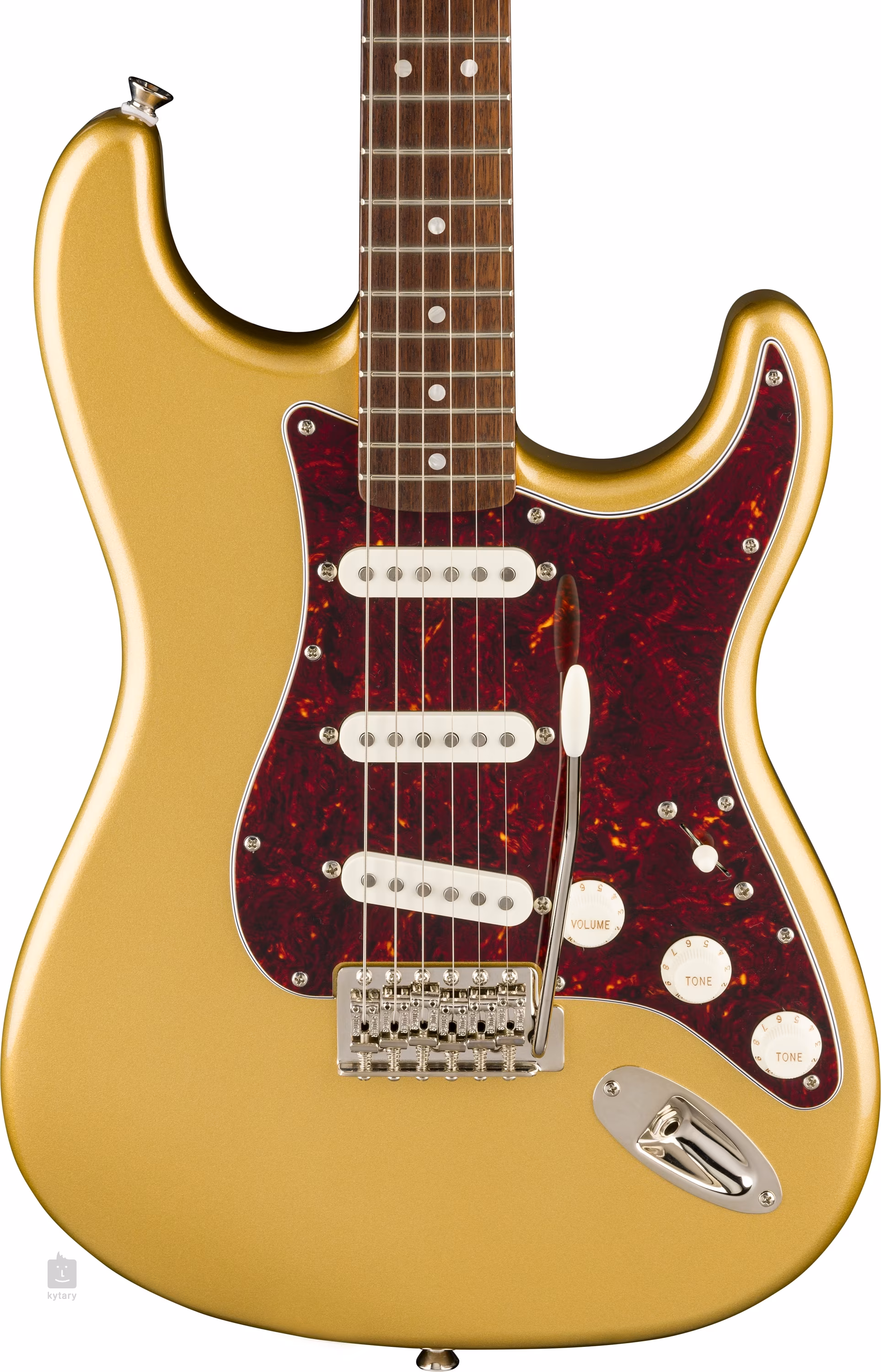 Drei proprietäre Single-Coil-Pickups mit Alnico-Magneten verleihen der Gitarre einen authentischen Strat-Sound und ein authentisches Spielgefühl. Mit den Standardreglern lässt sich der Klangcharakter einstellen. Die Saiten sind in den synchronisierten Vintage-Tremolotonabnehmern des Unternehmens montiert. Der stilvolle Look der Gitarre wird durch ein vierlagiges Schlagbrett aus Schildpatt-Imitat, Nickel-Hardware und das Squier by Fender-Logo auf der Kopfplatte unterstrichen.