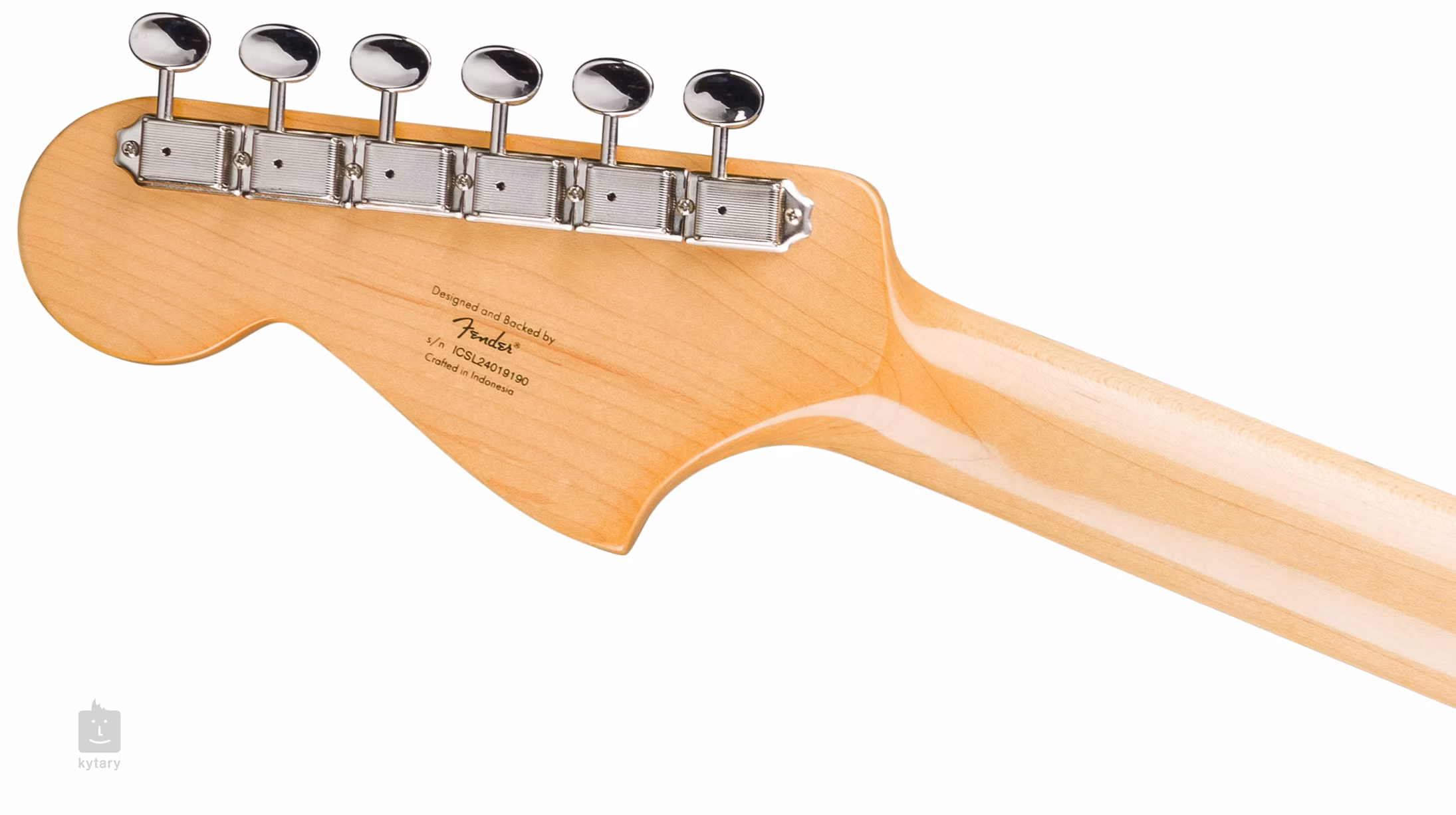 Der Korpus des FSR Classic Vibe Bass VI LRL BGM in limitierter Auflage ist aus Pappelholz gefertigt. Der schmale Ahornhals mit komfortablem C-Profil ist auf ein Feigengriffbrett mit einundzwanzig Narrow Tall-Bünden geleimt. Die Orientierung auf dem Griffbrett wird durch Positionsblöcke aus Perlmuttimitat erleichtert.