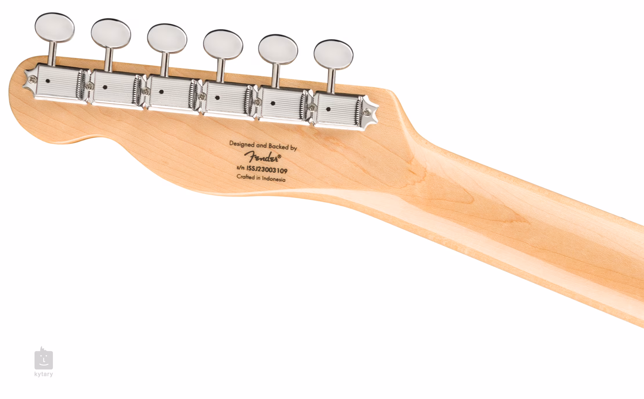 Zwei Fender Designed Alnico Single-Coil-Tonabnehmer sorgen für das Soundsystem der Gitarre, nämlich ein Tele Single-Coil-Tonabnehmer und ein Jazzmaster-Halstonabnehmer. Die serienmäßigen Volume- und Tone-Regler verfügen über Push/Pull-Funktionen und erlauben es, die Phase der Tonabnehmer sowie die Reihen- und Parallelschaltung umzuschalten. Die Saiten sind in Vintage-Stimmmechaniken und über eine Tele-Brücke mit drei Sätteln im Korpus befestigt. Das stilvolle Finish wird durch die Telecaster-Kontrollplatte und die Ice Blue Metallic-Farbgebung akzentuiert.