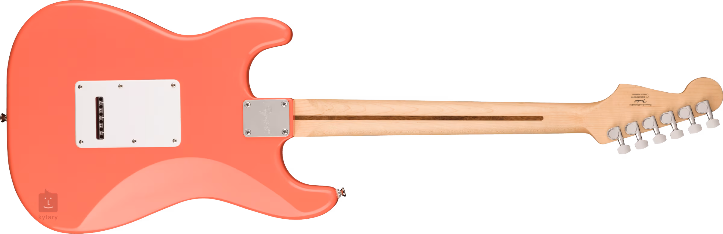Die Kombination aus einem Grasshopper-Humbucker und zwei Single-Coil-Tonabnehmern mit Keramikmagneten verleiht der Gitarre den saftig-rockigen und sauber klingenden Sound der Strat-Modelle. Seine Konturen lassen sich mit Lautstärkepotentiometern, zwei Tonreglern und einem fünfstufigen Pickup-Schalter einstellen. Die Saiten sind in den Druckguss-Stimmmechaniken und dem synchronisierten Tremolo des Unternehmens verankert. Das stilvolle Strat-Design wird durch verchromte Hardware, ein weißes einlagiges Schlagbrett und das Firmenlogo auf der Kopfplatte akzentuiert.