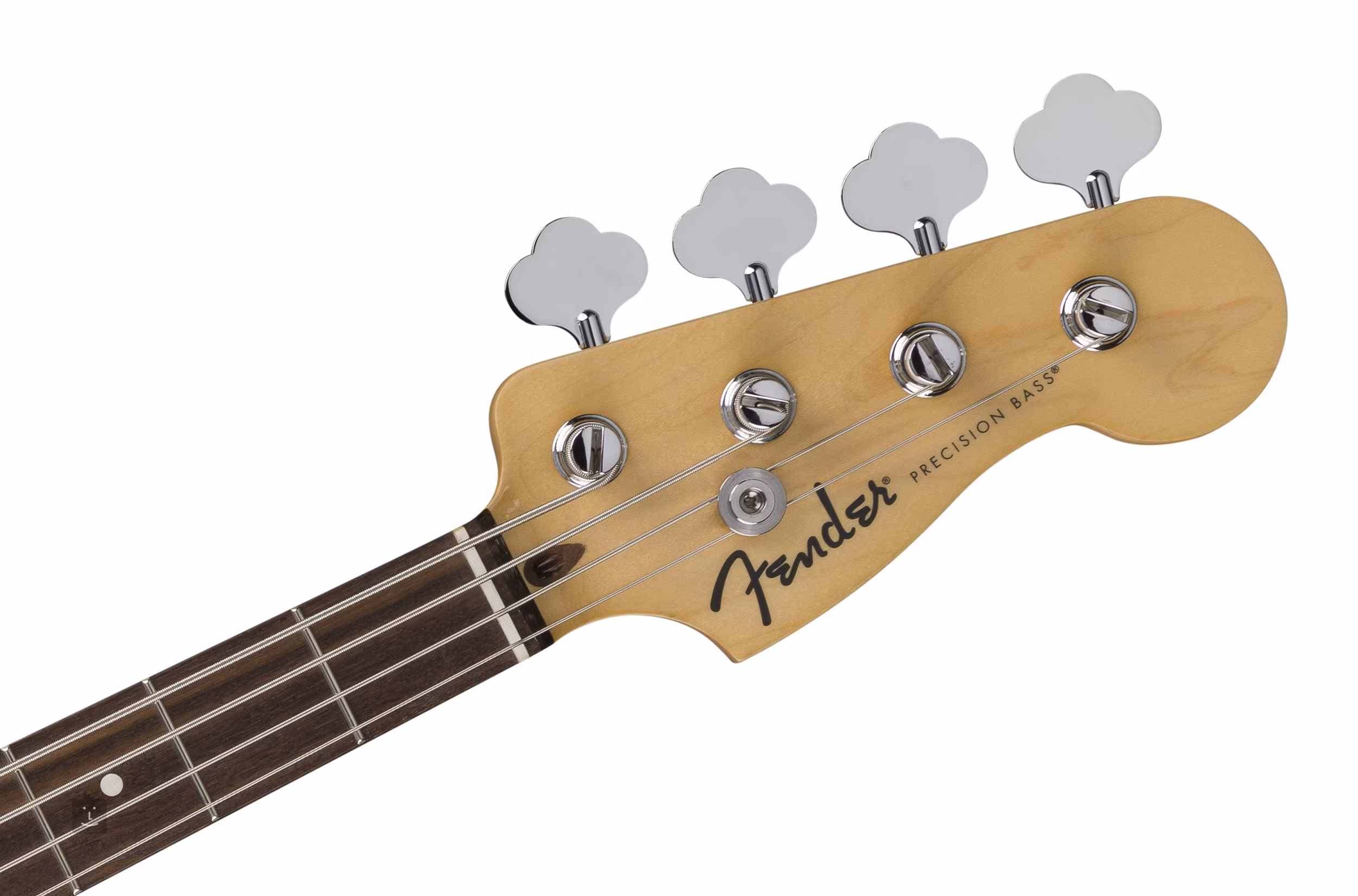 Der Fender Standard-Keramik-Single-Coil-P-Bass-Tonabnehmer sorgt für einen vielseitigen Sound, der sich für eine breite Palette von Musikstilen eignet. Der Vier-Sattel-Kolben mit satinierten Chromsätteln sorgt für präzise Intonation und Stimmstabilität, auch bei intensivem Spiel. Dank seiner Vielseitigkeit und Zuverlässigkeit findet dieser Bass leicht einen Platz in jedem musikalischen Line-up.